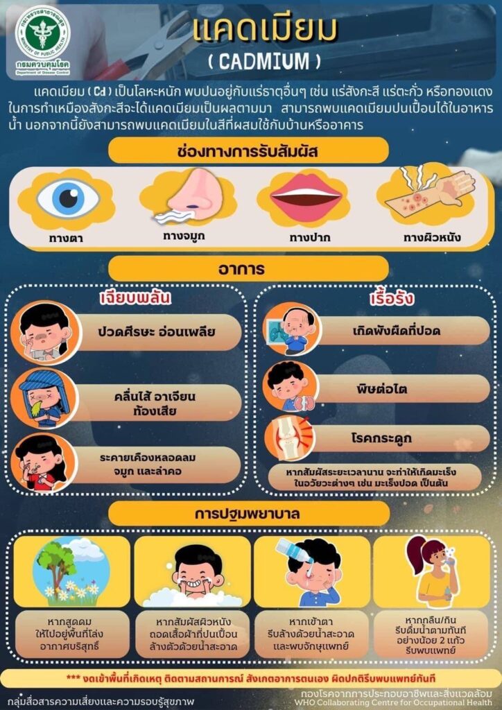 ประชาชนทั่วไปให้เฝ้าระวังและสังเกตอาการหากเกิดพิษที่เป็นผลจากแคดเมียม