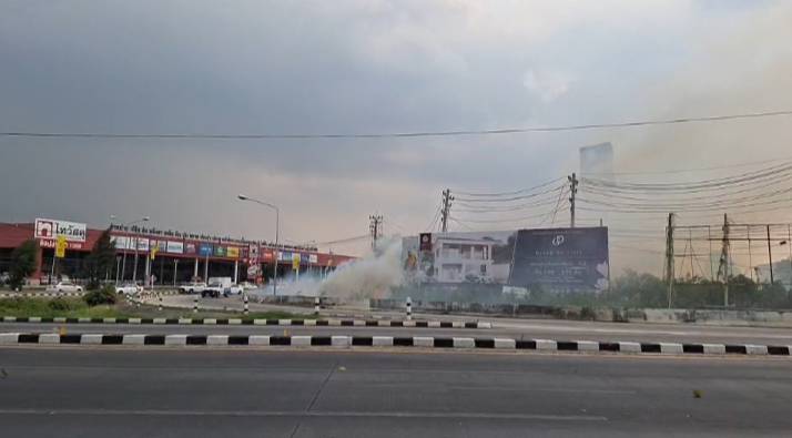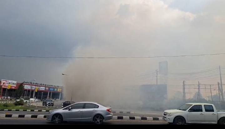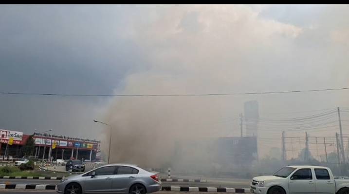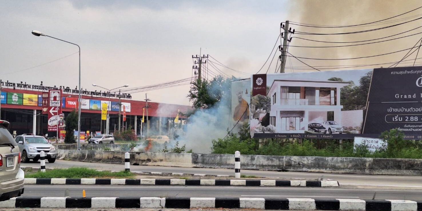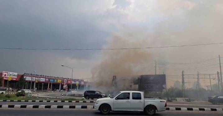 นายจุดที่เกิดเหตุพบว่ามีสะเก็ดไฟกำลังลุกไหม้ตรงเสาไฟฟ้า ประชาชนและชาวบ้านที่จะเดิมทางเข้าห้างโรบินสัน ได้เกิดการจราจรติดขัดเป็นกิโล