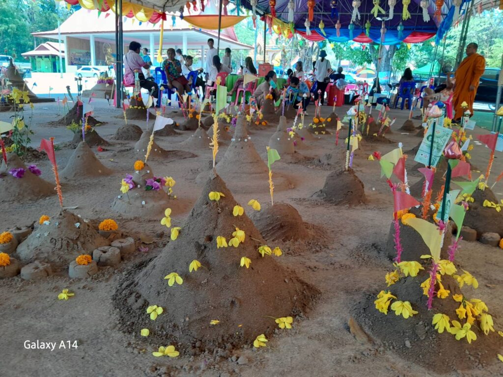 ซึ่งวันนี้ทางวัดจัดให้มีการก่อเจดีย์ทรายประเพณีดั้งเดิมของไทย สืบสานต่อเนื่องจนถึงปัจจุบัน ส่วนใหญ่จะจัดขึ้นพร้อมกับวันสงกรานต์ โดยมีจุดเริ่มต้นเกี่ยวข้องกับความเชื่อทางพุทธศาสนา เมื่อยุคสมัยเปลี่ยนผ่าน ปัจจุบันประเพณีก่อเจดีย์ทรายไม่เพียงแต่จัดขึ้นเพื่อทำบุญใหญ่ แต่นิยมจัดขึ้นโดยเน้นเพื่อการเฉลิมฉลอง เพิ่มสีสันให้ช่วงเทศกาลวันสงกรานต์แทนความเชื่อเกี่ยวกับประเพณีก่อเจดีย์ทราย