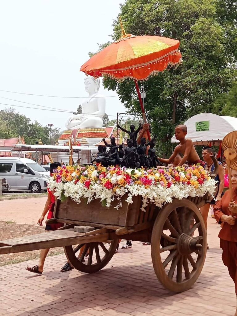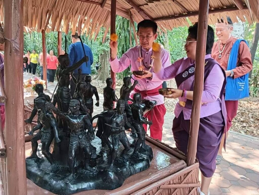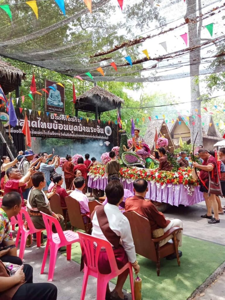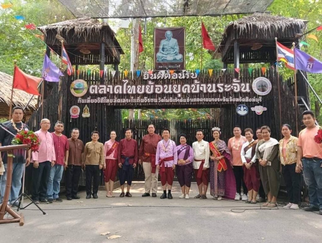 นายสุเมธ ธีรนิติ ผู้ว่าราชการจังหวัดสิงห์บุรี เป็นประธานพิธี “สรงน้ำหลวงปู่ธรรมโชติ เสริมมงคล รดน้ำปู่ย่าวีรชนชนะจน ชนะภัย” โดยมี นางวาสนา ธีรนิติ นายกเหล่ากาชาดจังหวัดสิงห์บุรี รองผู้ว่าราชการจังหวัดสิงห์บุรี หัวหน้าส่วนราชการ นายอำเภอค่ายบางระจัน เจ้าหน้าที่ หน่วยงานภาครัฐ ภาคเอกชน และประชาชน เข้าร่วมพิธี ณ บริเวณลานธรรม ตลาดไทยย้อนยุคบ้านพระจัน วัดโพธิ์เก้าต้น ตำบลบางระจัน อำเภอค่ายบางระจัน จังหวัดสิงห์บุรี โดยเน้นบรรยากาศในงานแบบย้อนยุคบ้านระจันแสดงถึงความศักดิ์สิทธิ์ของหลวงปู่ธรรมโชติ เชิดชูสระน้ำศักดิ์สิทธิ์ จึงทำการปลุกเสกน้ำจากสระน้ำศักดิ์สิทธิ์ด้วยการน้อมนำบารมีของหลวงปู่ธรรมโชติเป็นที่ตั้ง และนิมนต์พระเถรานุเถระร่วมกันเสกน้ำทิพย์ศักดิ์สิทธิ์ และนำพาน้ำทิพย์ศักดิ์สิทธ์เข้าริ้วขบวนอัญเชิญมาสรงน้ำมหามงคล นอกจากนี้ยังจัดกิจกรรมให้นักท่องเที่ยวได้ร่วมสนุกกับชาวตลาดไทยย้อนยุคบ้านระจัน อาทิ ประกวดหลานปู่หลานย่าวีรชนค่ายบ้านระจันเพื่อคัดสรรค์เป็นเทพีสงกรานต์เข้าร่วมริ้วขบวนและ กิจกรรมกลองยาวมหาสนุกการแสดงละครอิงประวัติศาสตร์ เพื่อส่งเสริมการท่องเที่ยวสร้างรายได้ในชุมชม และสนับสนุนให้ตลาดไทยย้อนยุคบ้านระจันรักษาอัตลักษณ์อันดีงาม ส่งต่อไปยังลูกหลาน และเป็นสถานที่ท่องเที่ยวทีดีให้กับจังหวัดสิงห์บุรี
