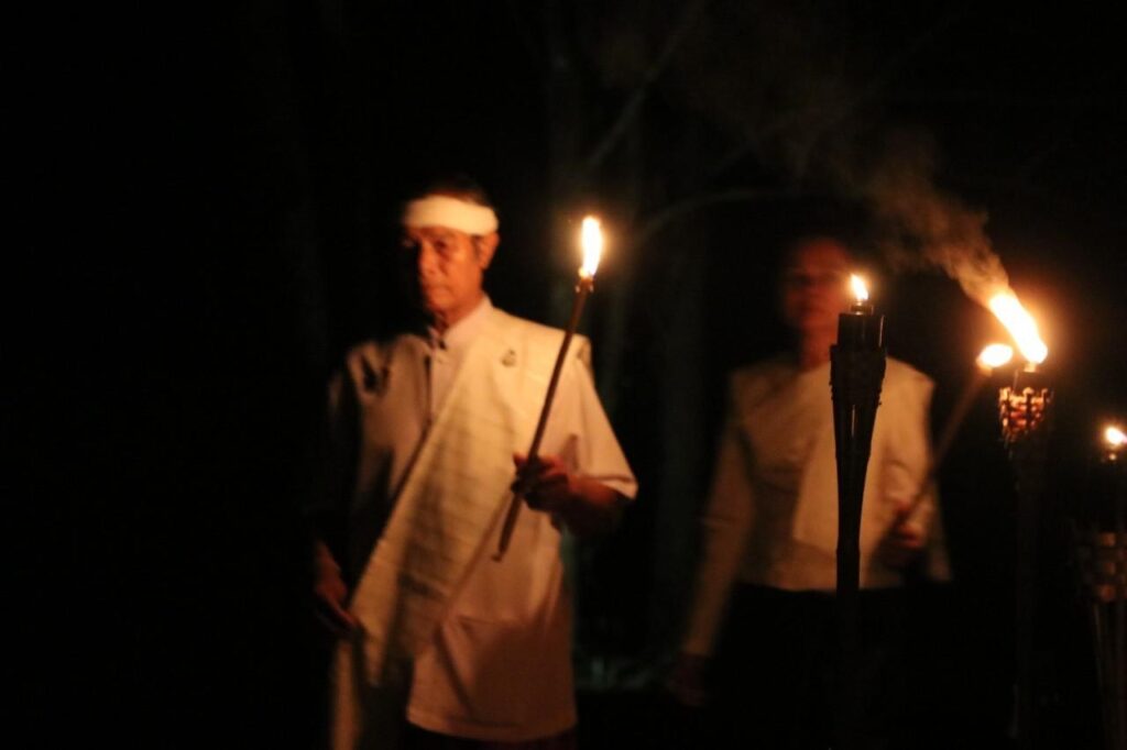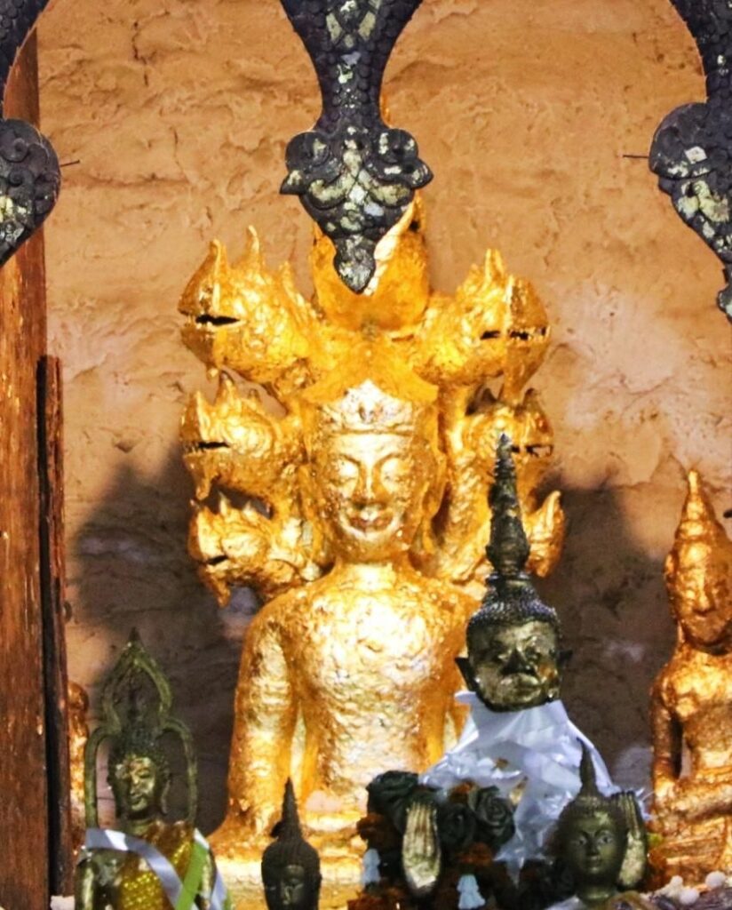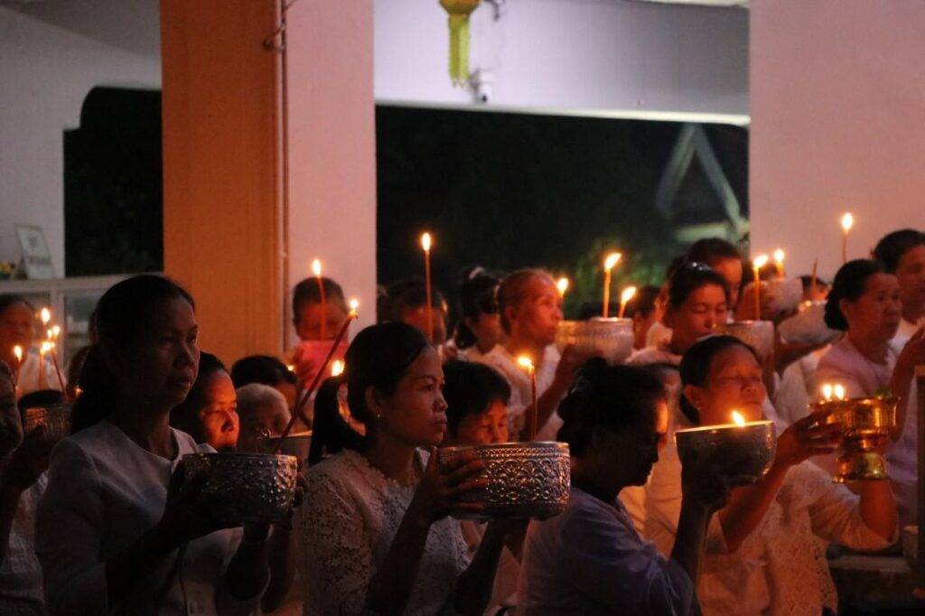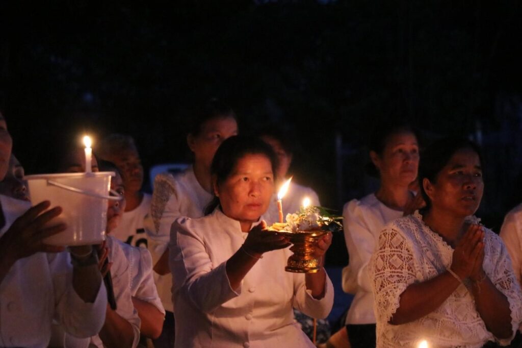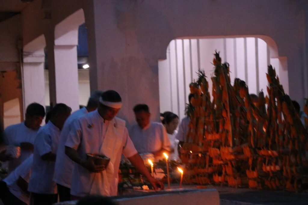 เมื่อถึงองค์พระธาตุแล้ว เจ้าพ่อกวนและคณะ ทำพิธีบูชาคารวะธาตุ ชาวบ้านลูกผึ้งลูกเทียนต่างนำข้าวเหนียวที่ปั้นเป็นก้อน ขนาดพอดีคำ คนละ 10 เป็น 100 และเพิ่มพูนเป็น 1,000 ผู้ชายถวายด้านในองค์พระธาตุ ส่วนผู้หญิงวางรอบ ๆ กำแพงแก้วขององค์พระธาตุ จึงเป็นที่มาของประเพณีนี้ ว่า “แห่ข้าวพันก้อน” ถวายแด่องค์พระธาตุศรีสองรัก และพระนาคปรกกายสิทธิ์ รวมถึง สิ่งศักดิ์สิทธิ์ที่ปกปักรักษาเมืองด่านซ้าย พร้อมกับรับพรสร้างพลังแก่ชีวิตและจิตใจให้มีความสุข ความสำเร็จในวันเริ่มต้นศกศักราชปีใหม่ตลอดปีและตลอดไป นอกจากนี้ ยังเป็นการสร้างความรักความสามัคคีของคนในชุมชน โดยใช้กิจกรรมทางประเพณีวัฒนธรรมเป็นสื่อกลาง