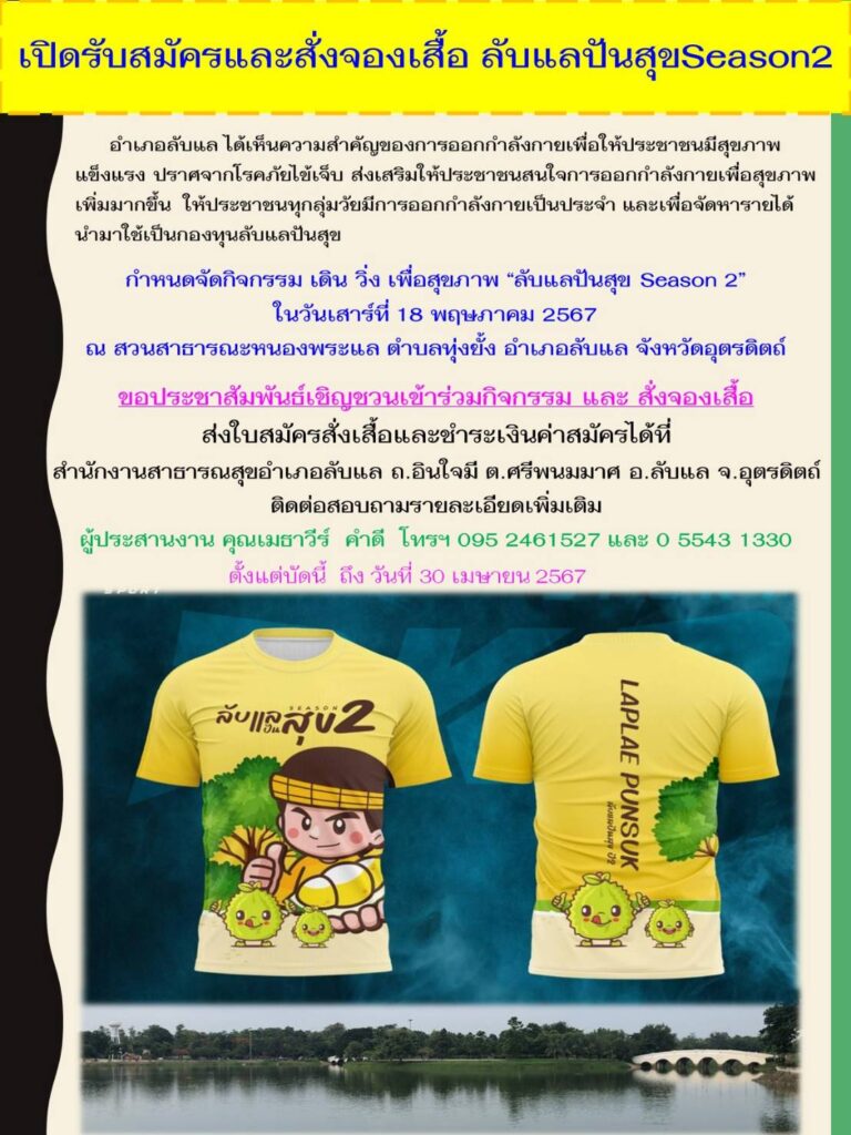 กำหนดจัดกิจกรรม เดิน วิ่ง เพื่อสุขภาพ “ลับแลปันสุข Season 2″ ในวันเสาร์ที่ 18 พฤษภาคม 2567 ณ สวนสาธารณะหนองพระแล ตำบลทุ่งยั้ง อำเภอลับแล จังหวัดอุตรดิตถ์