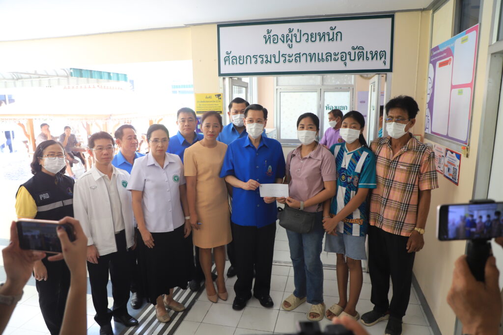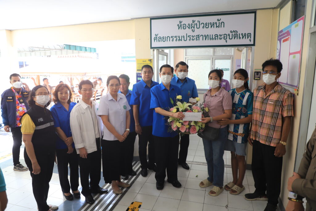 ด้านแพทย์หญิงนุชรินทร์ อักษรดี ผอ.รพ.พระนารายณ์มหาราช เปิดเผยว่า จากเหตุการณ์เกิดอุบัติเหตุเมื่อวันที่ 16 เมษายน 2567 ได้รับการประสานจากโรงพยาบาลพัฒนานิคมว่า มีอุบัติเหตุแล้วก็ทางโรงพยาบาลตำรวจได้ส่ง เฮลิคอปเตอร์ มารับซึ่งหลังจากที่นำคนไข้ขึ้นประมาณ 10 นาทีก็พบว่าคนไข้มีภาวะช็อกเนื่องจากเสียเลือดมากอาการไม่คง เฮลิคอปเตอร์ ก็เลยต้องลงกับมาที่เดิม แล้วก็ประสานรับส่งต่อมายังโรงบาลพระนารายณ์มหาราชซึ่งมาถึงโรงพยาบาลประมาณ 5 ทุ่ม พบว่าคนไข้มีอาการเสียเลือดมากมีภาวะช็อกและมีเลือดออกเนื้อเยื่อหุ้มปอดได้ใส่สายระบายเลือด ในส่วนของสมอง ได้รับความกระทบกระเทือนหลายแห่ง มีกระดูกต้นขาหัก บริเวณใบหน้ามีการบาดเจ็บ โดยเปิดระบายเลือดในสมองเพื่อลดภาวะสมองบวมตั้งแต่ตี 1 ถึง ตี 3 ตี ซึ่งปัจจุบันนี้ อาการดีขึ้นแล้ว สัญญาชีพคงที่มีแนวโน้มที่ดีขึ้น ทั้งนี้ได้รับความห่วงใยจากผู้ว่าราชการจังหวัด ผู้บังคับการตำรวจภูธรจังหวัดลพบุรี และหัวหน้าส่วนราชการได้มาเยี่ยม โดยผู้ว่าราชการจังหวัดลพบุรี ได้มอบเงินส่วนตัวให้ครอบครัวผู้ได้รับบาดเจ็บ เป็นจำนวนเงิน 10,000 บาท และ สำนักยุติธรรมจังหวัดลพบุรี มอบเงิน 50,000 บาท ซึ่งเป็นสิทธิการขอรับค่าตอบแทนผู้เสียหายในคดีอาญาอีกด้วย นอกจากนี้รอง ผบ.ตร.ได้มีความห่วงใยจะเดินทางมาเยี่ยมเช่นกัน ซึ่งทางโรงพยาบาลตำรวจก็ยินดีรับช่วงต่อในการดูแลคนไข้เมื่อมีอาการคงที่แล้ว จะส่งรถพยาบาลมารับ ช่วงนี้อยู่ระหว่างการประเมินว่าจะมีความพร้อมในการส่งต่อระหว่างทางหรือไม่โดยเมื่อคนไข้อาการคงที่พร้อมเคลียเส้นทางระยะทางที่ไม่เกิน 1 ชั่วโมงก็สามารถส่งต่อไปยังโรงพยาบาลตำรวจได้ ซึ่ง ตอนนี้ทางร.พ.พระนารายณ์ฯ ก็จะดูแลผู้บาดเจ็บอย่างเต็มที่