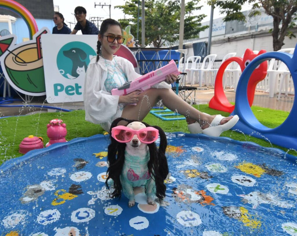 ,โซน Photo Backdrop ที่ให้คุณสามารถบันทึกภาพความสนุกของเทศกาลสงกรานต์ไว้เป็นที่ระลึกว่าเจ้าของและน้องหมาได้มาทำกิจกรรมร่วมกันได้อย่างเต็มที่เป็นครั้งแรกในเทศกาลสงกรานต์