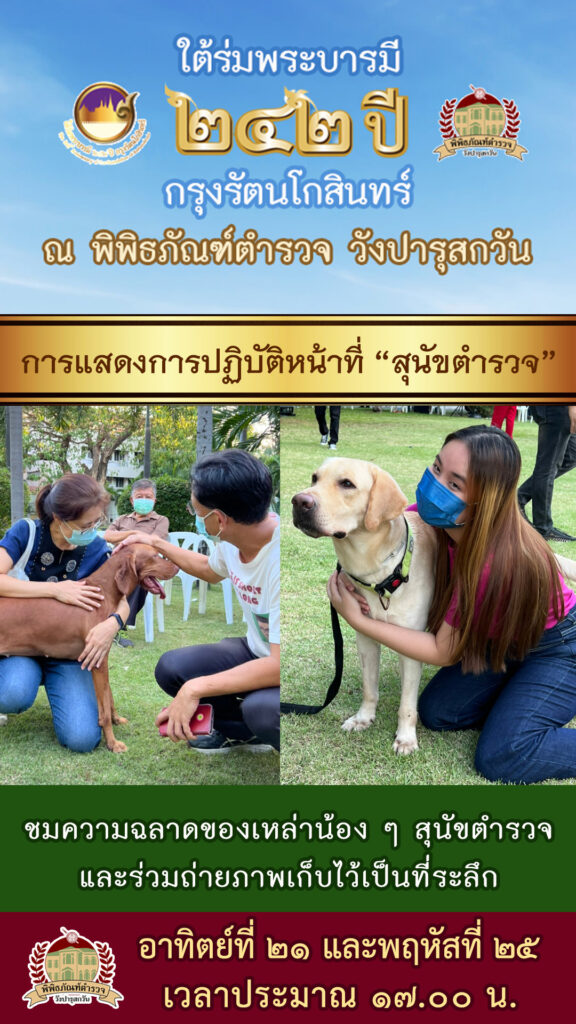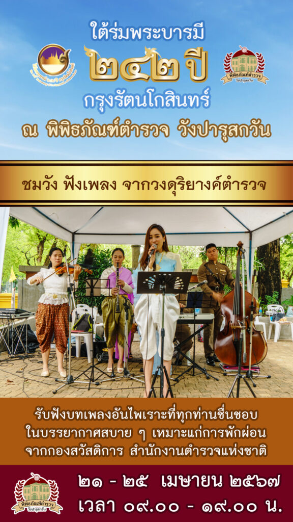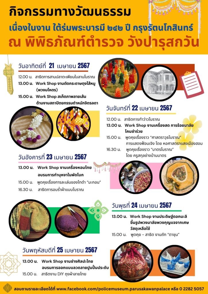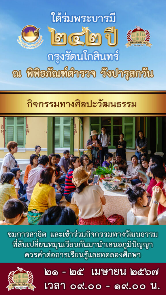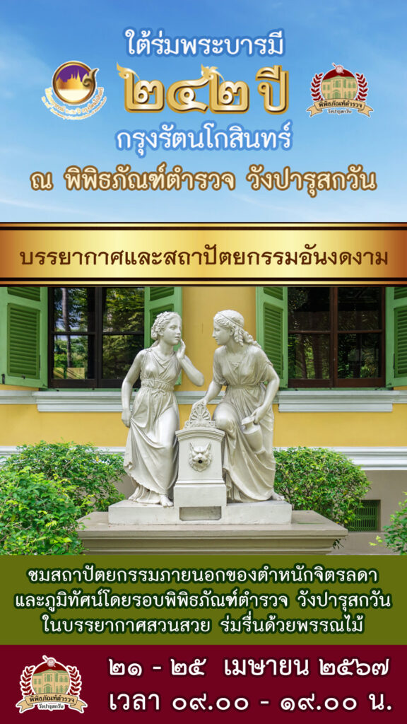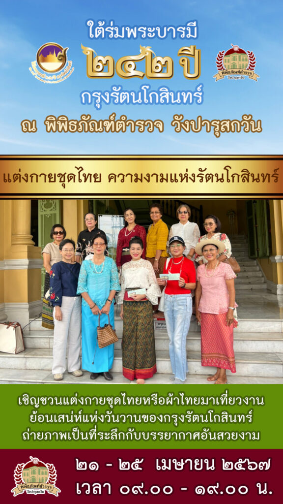 พิพิธภัณฑ์ตำรวจ สำนักงานตำรวจแห่งชาติ เป็น 1 ในพิพิธภัณฑ์รอบเกาะรัตนโกสินทร์ เข้าร่วมกิจกรรมในงาน “ใต้ร่มพระบารมี 242 ปี กรุงรัตนโกสินทร์” เชิญชวนพี่น้องประชาชนเยี่ยมชมพิพิธภัณฑ์ตำรวจ วังปารุสกวัน ระหว่างวันที่ 21-25 เมษายนนี้ ตั้งแต่เวลา 09.00-19.00 น.