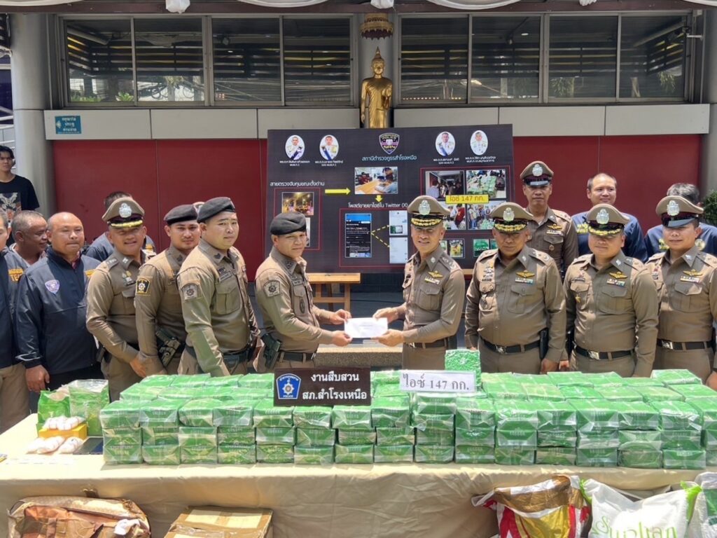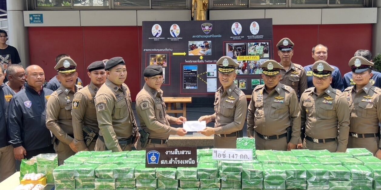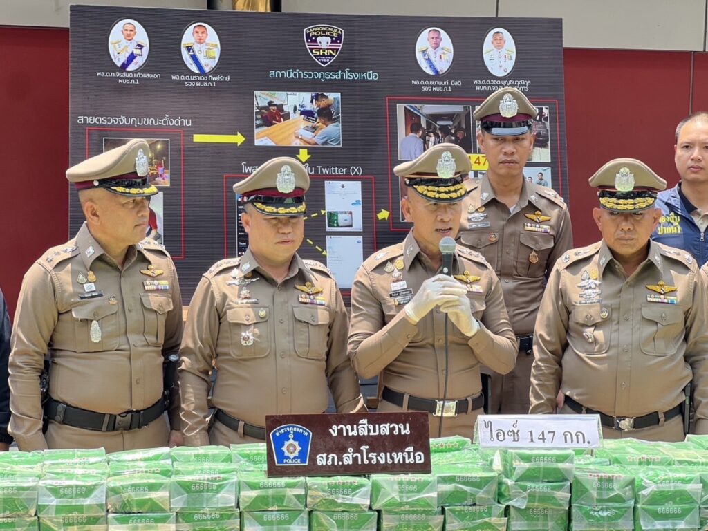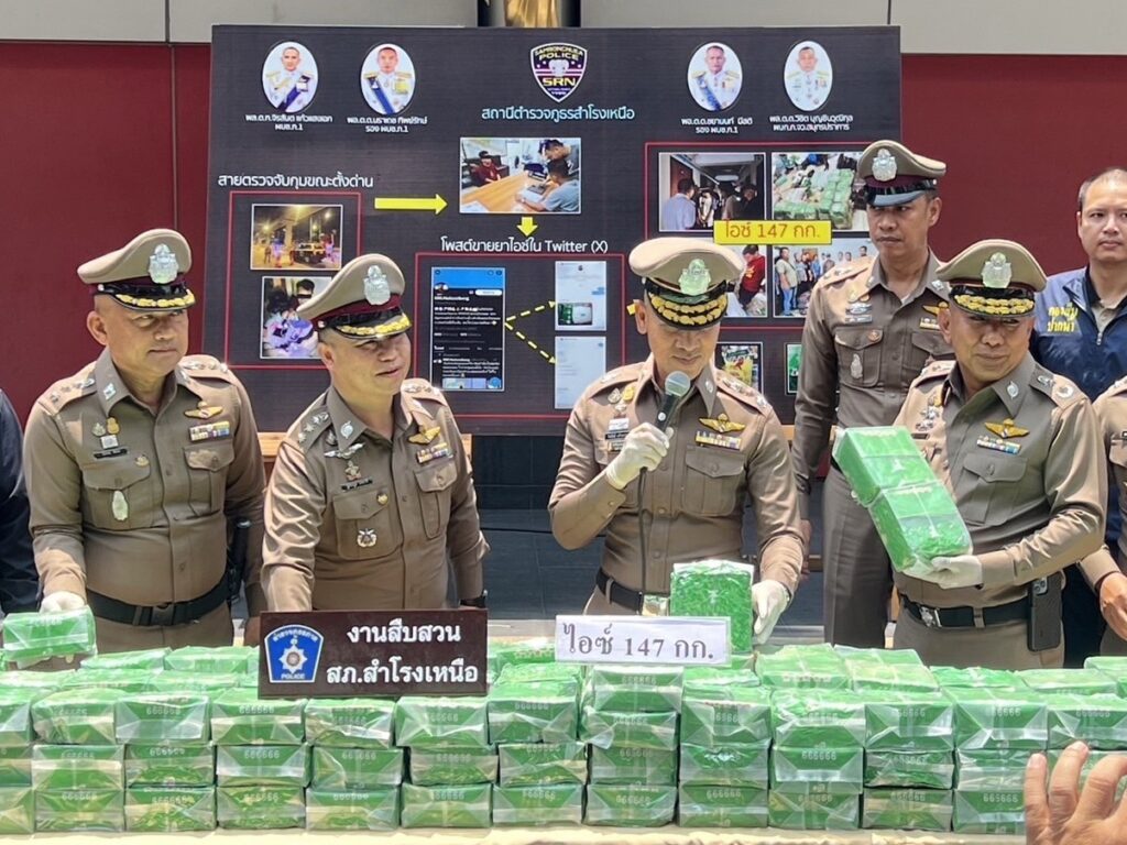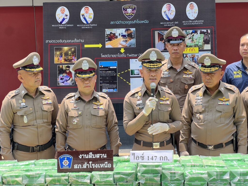 ต่อมาชุดสืบสวน สภ.สำโรงเหนือ ได้ขยายผลการจับกุม นายจักรภพฯ ทราบว่าได้มีการกระทำความผิดอาชญากรรมทางเทคโนโลยี โดยมีผู้ใช้Twitter (X) ชื่อบัญชี MR.Heisenberg (มิสเตอร์ไฮเซนเบิร์ก) ได้โพสต์ประกาศขายยาไอซ์ทาง Twitter (X) (เปิดสถานะสาธารณะ) โดยใช้แฮชแท็ก “#น้ำแข็งสุขสวัสดิ์ #น้ำแข็ง พระประแดง #น้ำแข็งซิ่งฯ” ประกาศขายแก่บุคคลทั่วไป ซึ่งมีผู้ติดตามจำนวนมาก ชุดสืบสวนได้สืบทราบว่า ผู้ใช้บัญชี Twitter (X) ดังกล่าว คือ นายนเรนท์ศักดิ์ฯ จึงได้วางแผนในการจับกุมโดยให้สายลับติดต่อล่อซื้อทาง Twitter (X) ไอซ์ จำนวน 10 กรัม ราคา 1,500 บาท เมื่อ นายนเรนท์ศักดิ์ฯ มาส่งมอบยาเสพติดให้แก่สายลับ ชุดสืบสวนได้แสดงตัวจับกุม ซึ่งนายนเรนท์ศักดิ์ให้การรับสารภาพเพิ่มเติมว่าได้มียาเสพติดจำนวนมาก ซุกซ่อนอยู่ในอพาร์ตเม้นต์ของตนเอง ภายในพื้นที่ อำเภอพระประแดง จังหวัดสมุทรปราการ และได้สมัครใจนำตรวจค้นห้องพัก ผลการตรวจค้นพบไอซ์ จำนวน 147 กิโลกรัม ภายในห้องพักดังกล่าว โดยนายนเรนท์ศักดิ์ให้การเพิ่มเติมว่า เมื่อวันที่ 5 เมษายน ที่ผ่านมา นายโจ (นามสมมุติ) ได้นำมาฝากตนไว้เพื่อรอส่งให้แก่ลูกค้า โดยได้รับค่าจ้าง 3,000 บาท ซึ่ง นายโจฯ จะมารับยาเสพติดทั้งหมดคืนหลังสงกรานต์ นายนเรนท์ศักดิ์ฯ ให้การว่า ชื่อ MR.Heisenberg (มิสเตอร์ไฮเซนเบิร์ก) เป็นชื่อตัวละครจากซีรีส์เรื่องหนึ่งใน Netflix ซึ่งมีเนื้อหาเกี่ยวกับยาไอซ์ รู้สึกประทับใจจึงใช้ชื่อดังกล่าว ชุดสืบสวนได้นำตัวผู้ต้องหาพร้อมของกลางส่งพนักงานสอบสวน และจะขยายผลถึงผู้ที่เกี่ยวข้องต่อไป