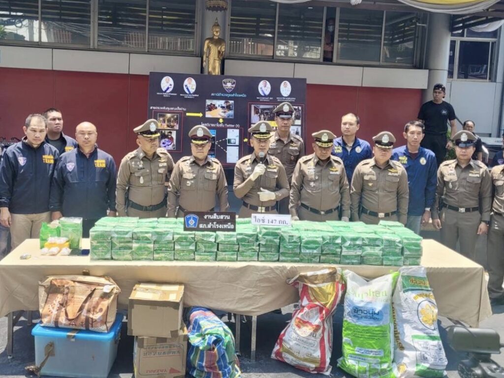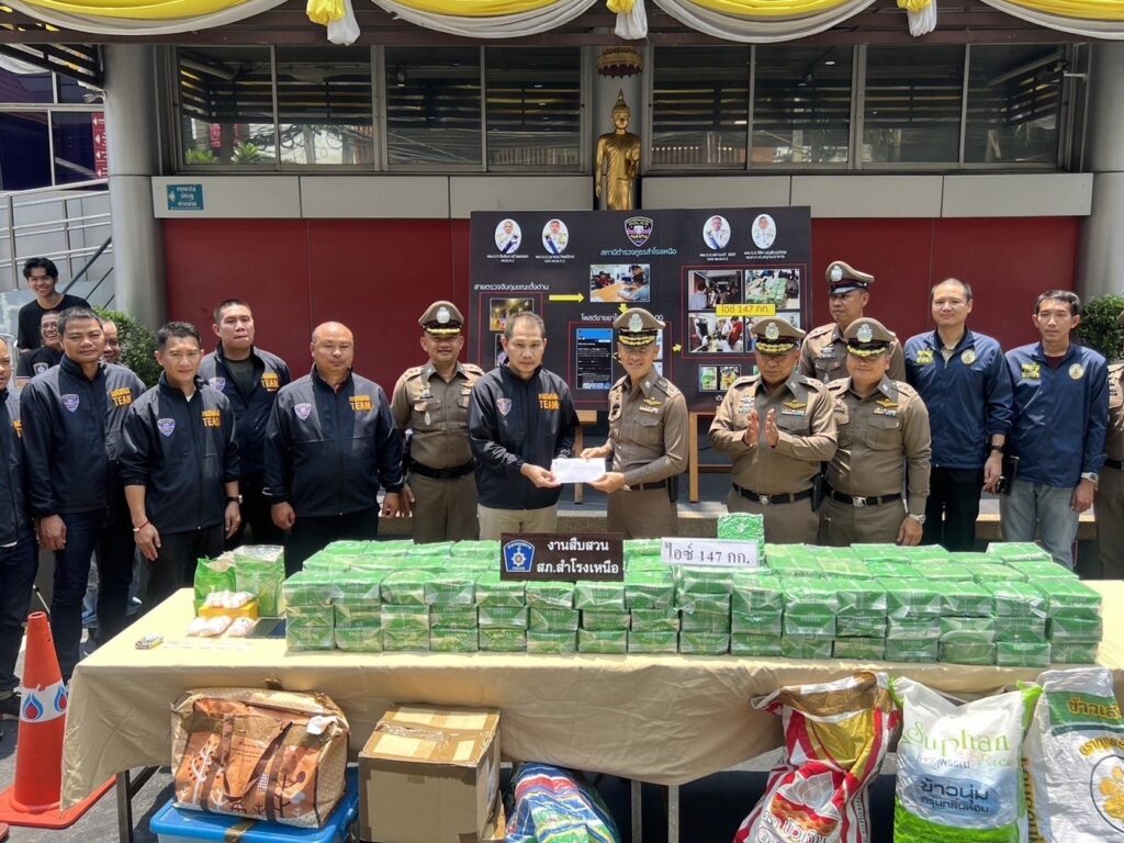 ร่วมแถลงข่าวการจับกุมเครือข่ายยาเสพติด (ไอซ์) จำนวน 147 กิโลกรัม มูลค่าประมาณ 25 ล้านบาท ณ สภ.สำโรงเหนือ จ.สมุทรปราการ