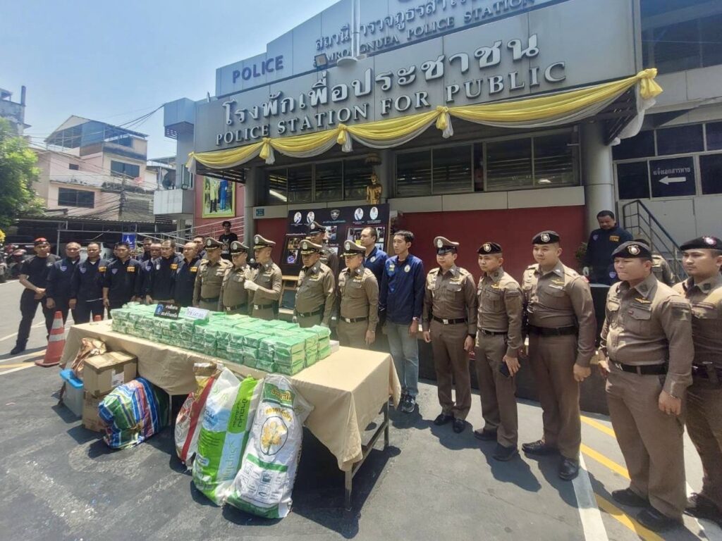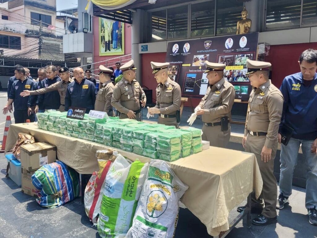 สถานีตำรวจภูธรสำโรงเหนือ พันตำรวจเอก วิโรจน์ ตัดโส ผู้กำกับการสถานีตำรวจภูธรสำโรงเหนือ,พันตำรวจโท จุลินทร์ ตลาดธานี รองผู้กำกับการสืบสวนสถานีตำรวจภูธรสำโรงเหนือ เจ้าหน้าที่ตำรวจฝ่ายสืบสวน นำโดย พันตำรวจโท ธนกร จุปะมะตัง สารวัตรสืบสวนสถานีตำรวจภูธรสำโรงเหนือ,พันตำรวจโท จรัส บุญลา สารวัตรสืบสวนสถานีตำรวจภูธรสำโรงเหนือ พันตำรวจตรี ขจร ภู่ระหงษ์ สารวัตร (สอบสวน) สถานีตำรวจภูธรสำโรงเหนือ พร้อมกำลังเจ้าหน้าที่ตำรวจฝ่ายสืบสวน ได้ร่วมกันจับกุมตัว นายนเรนท์ศักดิ์ (นามสมมุติ) อายุ 26 ปี ชาวจังหวัดมหาสารคาม พร้อมด้วยของกลาง ไอซ์ จำนวน 147 กิโลกรัม มูลค่าประมาณ 25,000,000 บาท โดยกล่าวหาว่า “จำหน่ายโดยการครอบครองเพื่อหน่ายยาเสพติดให้โทษประเภท 1 (ไอซ์) อันเป็นการกระทำเพื่อการค้าและก่อให้เกิดการแพร่กระจายในกลุ่มประชาชนโดยไม่ได้รับอนุญาต” จับกุมได้ที่บริเวณอพาร์ตเม้นต์ พื้นที่ อำเภอพระประแดง จังหวัดสมุทรปราการ