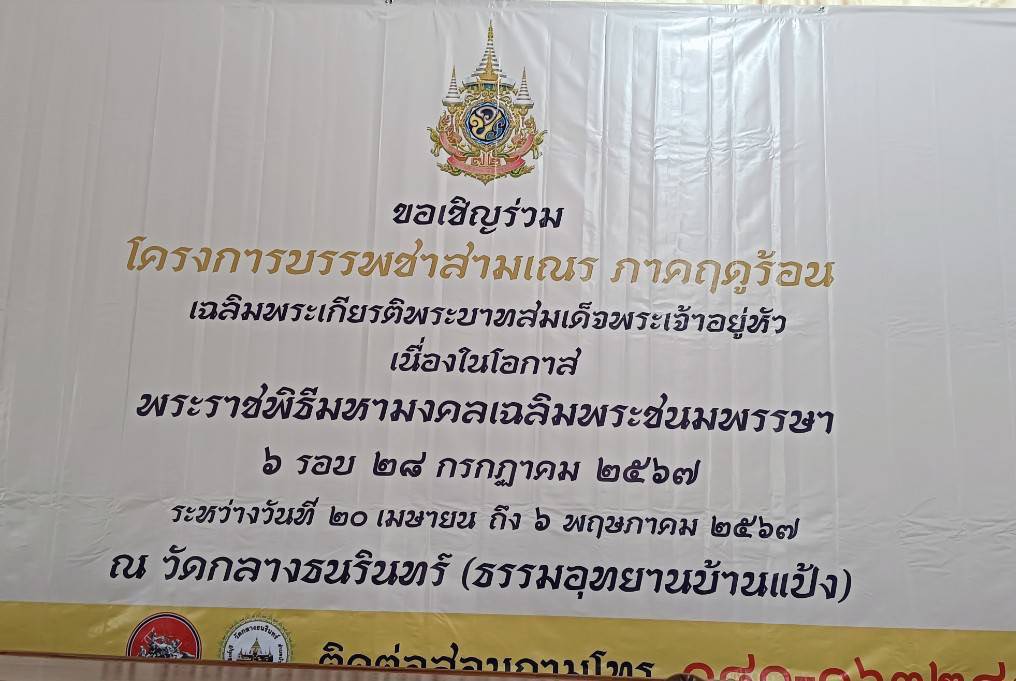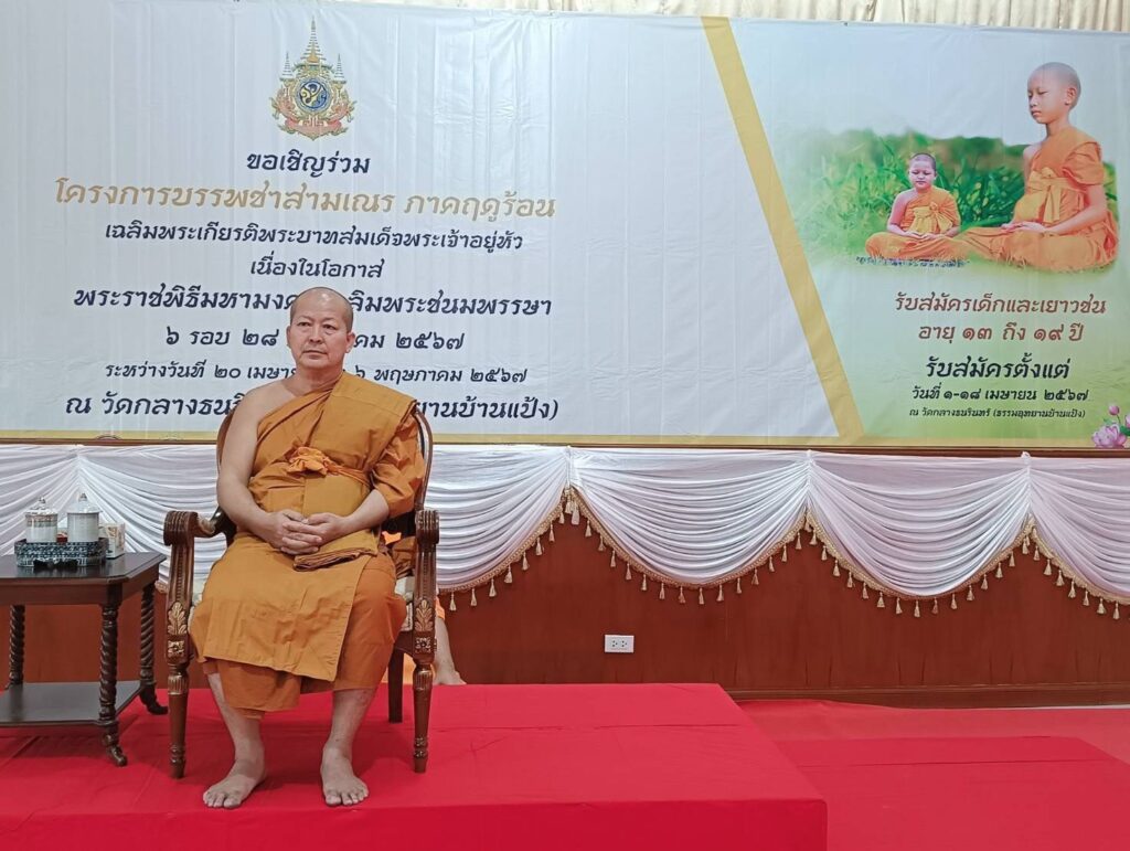 วันที่ 21 เมษายน 2567 เวลา 09.00 น. นายสุเมธ ธีรนิติ ผู้ว่าราชการจังหวัดสิงห์บุรี มอบหมายให้นายปรีชา ดิลกพรเมธี รองผู้ว่าราชการจังหวัดสิงห์บุรี เป็นประธานพิธีปลงผมโครงการบรรพชาสามเณรภาคฤดูร้อน เฉลิมพระเกียรติพระบาทสมเด็จพระเจ้าอยู่หัวเนื่องในโอกาสมหามงคลเฉลิมพระชนมพรรษา 6 รอบ 28 กรกฎาคม 2567 และนางวาสนา ธีรนิติ นายกเหล่ากาชาดจังหวัดสิงห์บุรี ได้มอบหมายให้นางวันวิสาข์ ดิลกพรเมธี รองนายกเหล่ากาชาดจังหวัดสิงห์บุรี เข้าร่วมพิธีฯ โดยมีหัวหน้าส่วนราชการ นายอำเภอ ผู้ช่วยนายกเหล่ากาชาดจังหวัดสิงห์บุรี กรรมการเหล่ากาชาดจังหวัดสิงห์บุรี สมาชิกชมรมแม่บ้านมหาดไทย ข้าราชการ เจ้าหน้าที่เหล่ากาชาดจังหวัดสิงห์บุรี และประชาชน เข้าร่วมพิธีดังกล่าว ณ วัดกลางธนรินทร์ ตำบลบ้านแป้ง อำเภอพรหมบุรี จังหวัดสิงห์บุรี