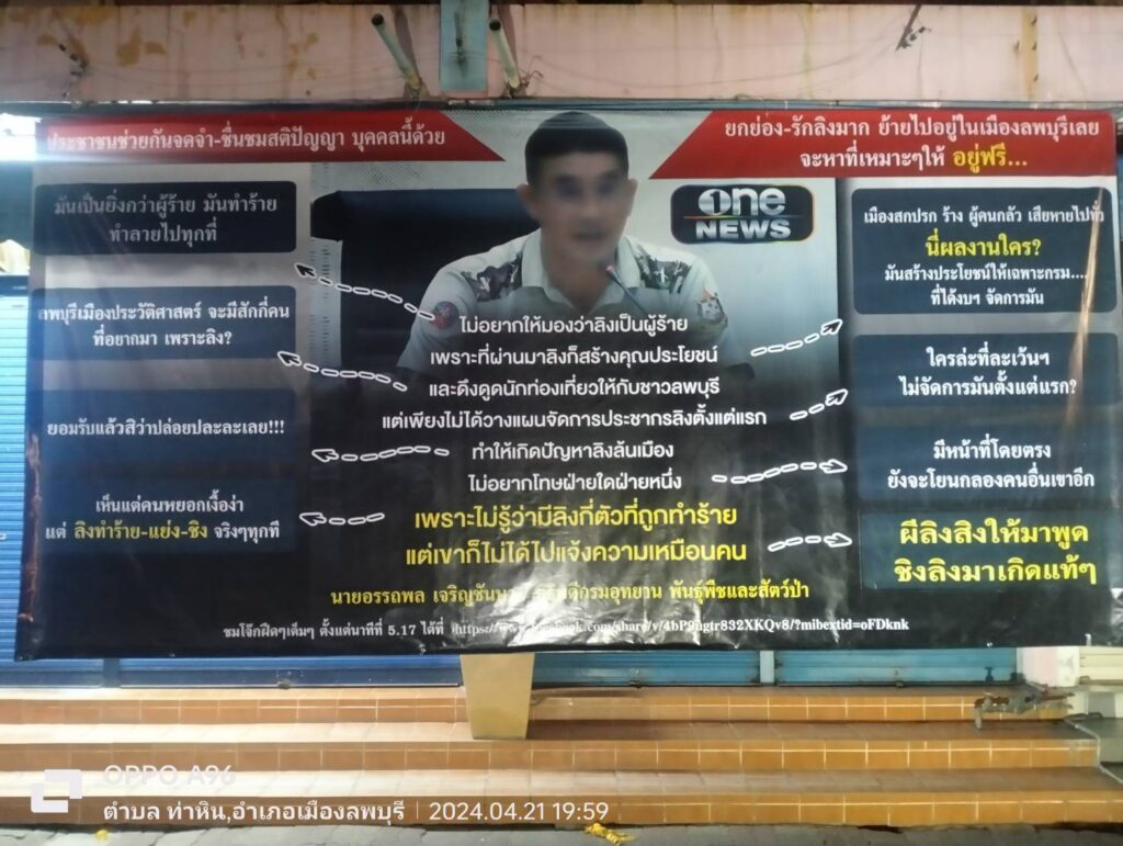 ทนไม่ไหว หลังกรมอุทยานฯ ว่าคนรังแกลิง เข้าข้างลิงขึ้นป้ายประท้วงทั่วเมืองต้อนรับกรรมาธิการในพรุ่งนี้ (22 เม.ย.)