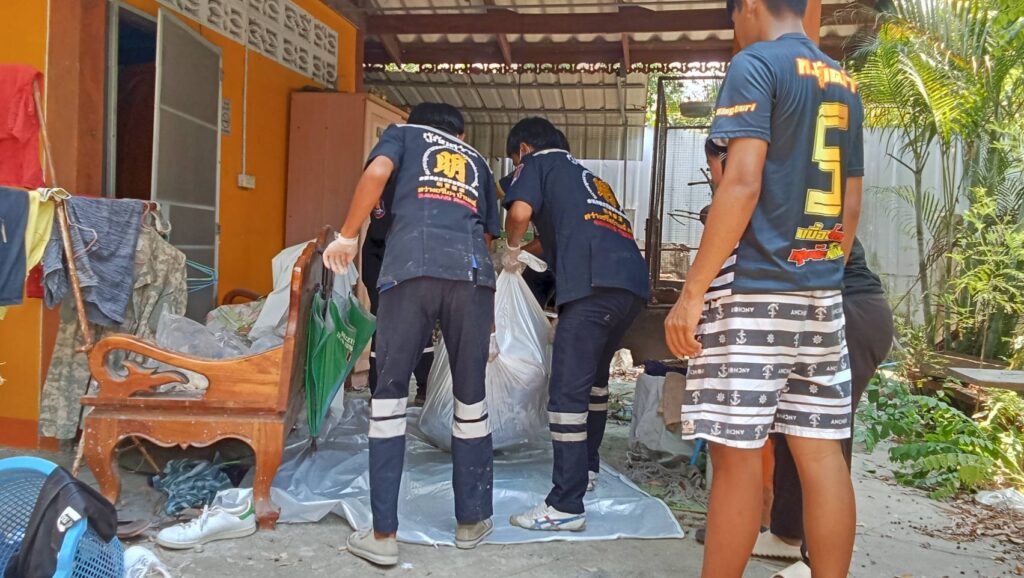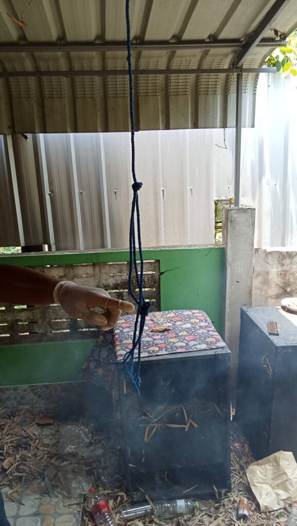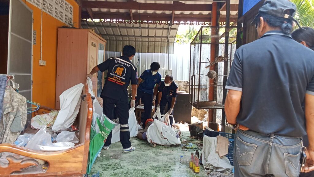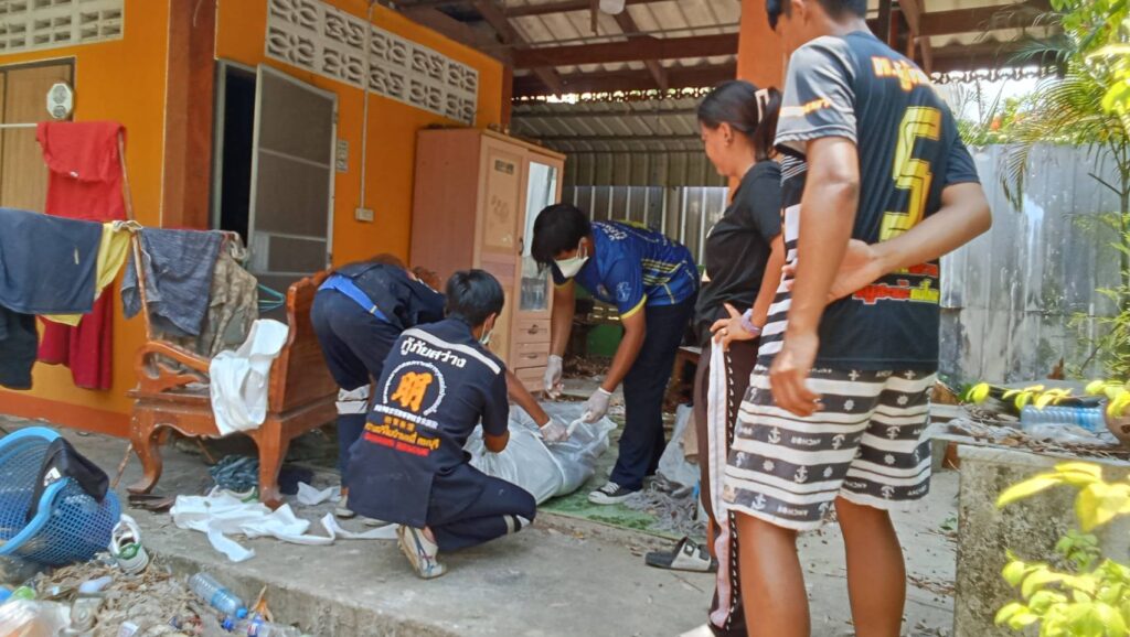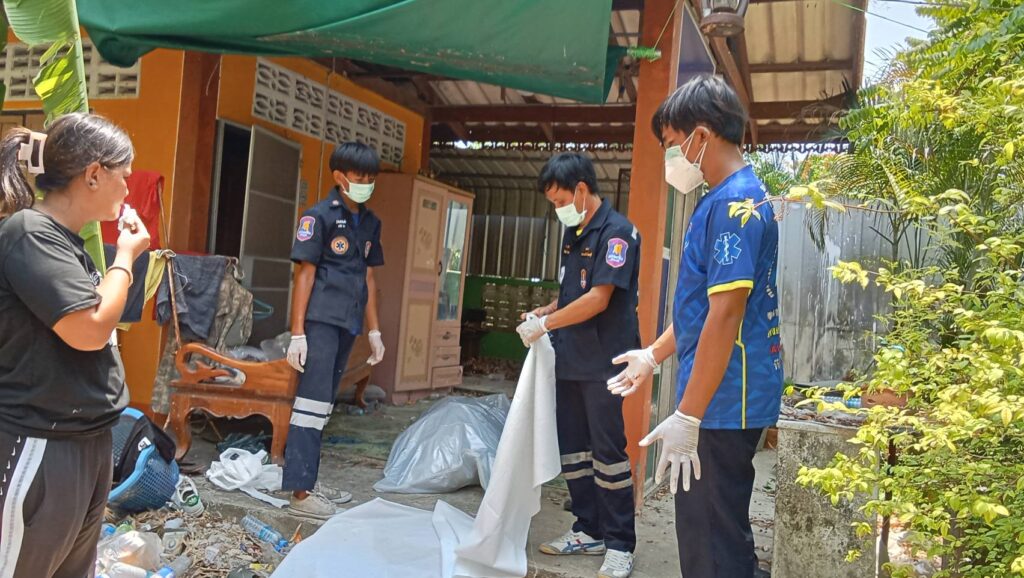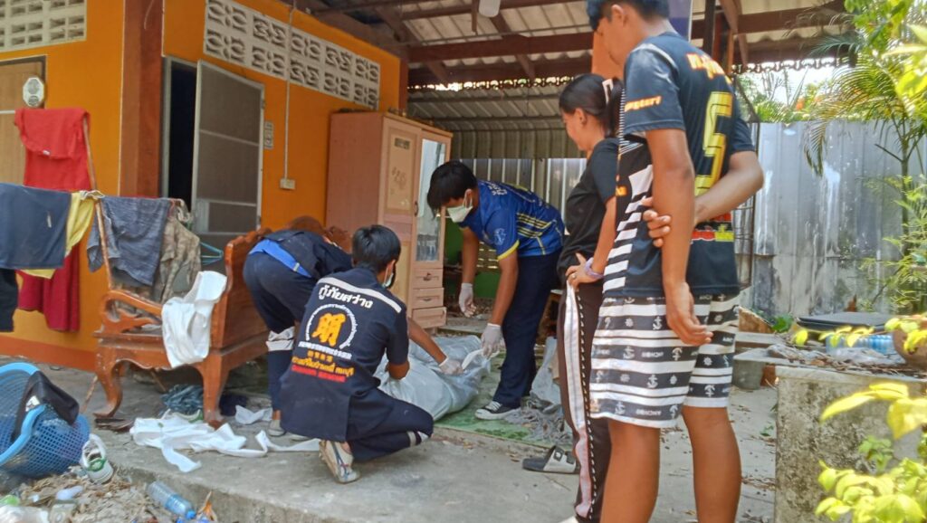 เหตุการณ์เบื้องต้องต้น สอบถามจากผู้เป็นแม่เล่าให้ฟังว่า ช่วงเวลาประมาณ 10.30 น.ตนได้เข้ามาเรียกผู้เสียชีวิตออกมากินข้าว แต่ไม่มีเสียงตอบรับ ตนไม่กล้าเข้าไปดูเพราะผู้เสียชีวิตเป็นผู้ป่วยทางระบบประสาท ตนจึงช่วงเพื่อนบ้านเข้าไปดูเพราะพูดเสียชีวิตไม่ได้ออกจากบ้านตั้งแต่ 21 เมษา พอเข้าไปถึงตัวบ้านได้เห็นผู้เสียชีวิตนอนเสียชีวิตอยู่หน้าบ้าน ตนจึงแจ้งกับทางผู้ใหญ่บ้านและเจ้าหน้าที่กู้ภัยสว่างอริโยมาตรวจสอบพร้อมร้อยเวรและแพทย์ชันสูตร พบว่าผู้เสียชีวิตได้ผูกคอ เสียชีวิตไม่ต่ำมาแล้ว 2 วัน