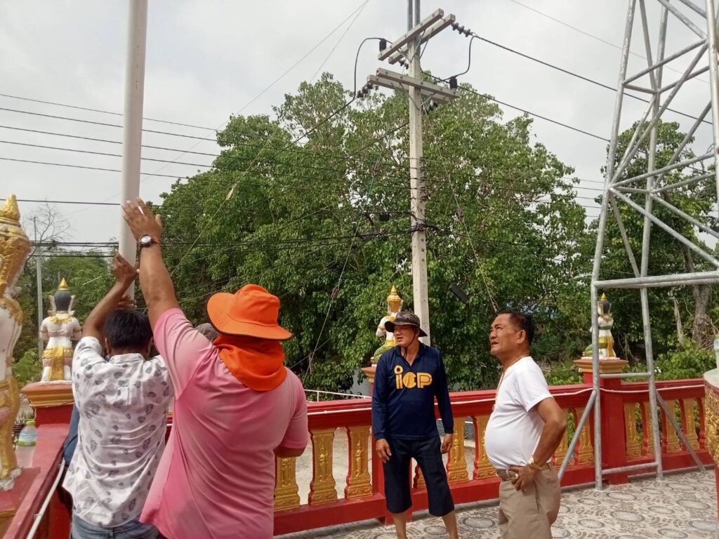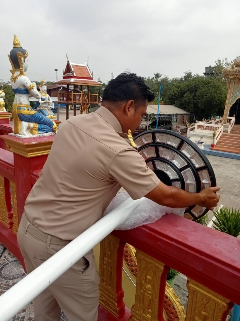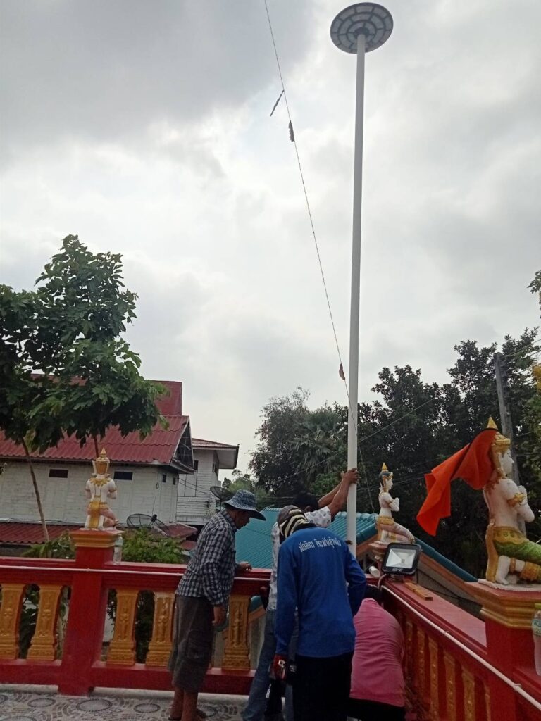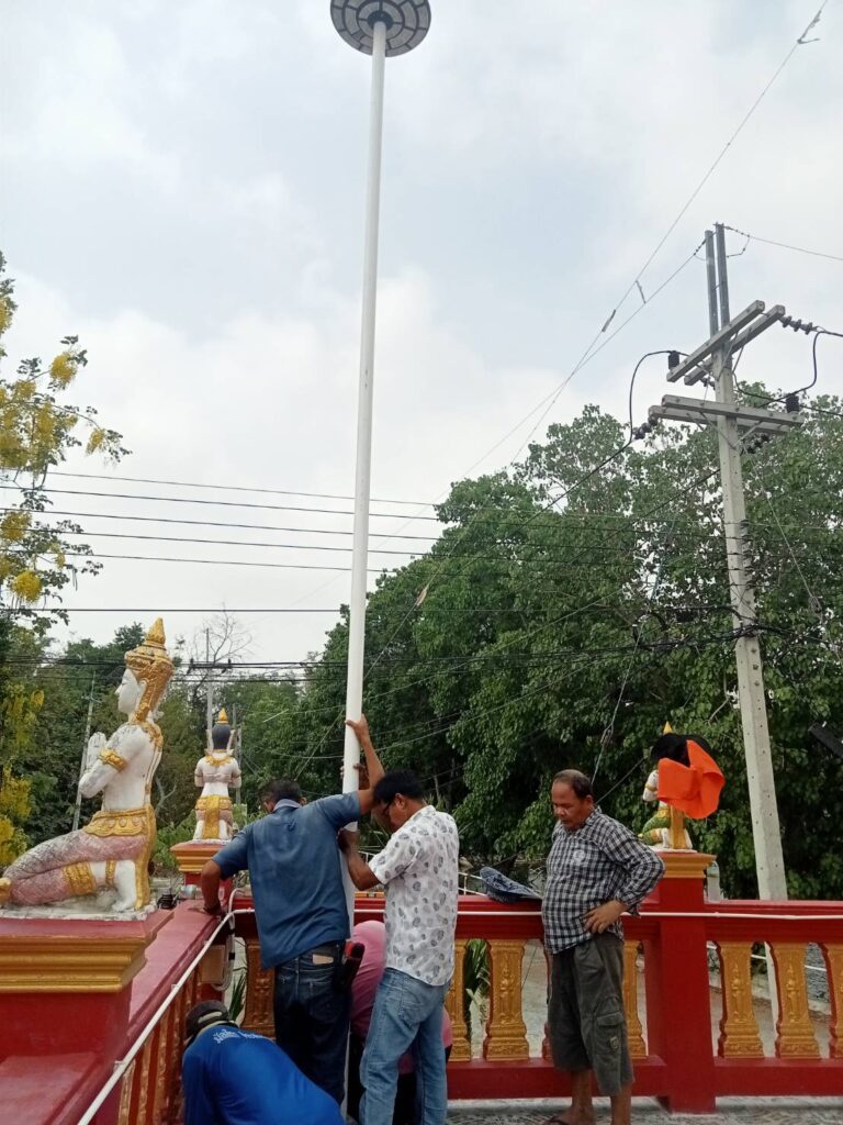 ได้พาทีมงานกองช่าง อบต. หนองทรายขาว และสมาชิก อบต. บ้านมะขามเฒ่า พร้อมด้วยผู้ใหญ่บ้าน ลงพื้นที่หมู่ที่ 1 วัดบ้านมะขามเฒ่า ติดตั้งไฟโซล่าเซลล์ ตาม ” โครงการนำไฟ และแสงสว่างเข้าวัดเพื่อการพัฒนาอย่างยั่งยืน” โดยโครงการนี้ใช้งบ (เป็นเงินประมาณ 45,000 บาท และเป็นเงินที่ ท่านนายก อบต.หนองทรายขาว ใช้ทุนทรัพย์ส่วนตัวมาบริจาคในการทำทั้งหมด) เพื่อเป็นการพัฒนาภายในพื้นที่ตำบลหนองทรายขาว ของเราเพิ่มความแสงสว่างให้กับวัดบ้านมะขามเฒ่า บนหลวงพ่อพระองค์ใหญ่(หลวงพ่อทันใจ) และทาสีทองที่ชำรุดบางจุด พร้อมติดตั้งไฟเพิ่มเติมอีกจำนวน 2 ต้น โดยโครงการได้มีผู้มีจิตศรัทธาร่วมสมทบเงินบริจาคในโครงการนี้ จำนวน 4 ท่านดังนี้