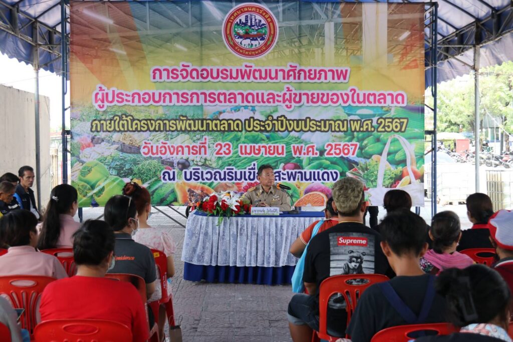 เมื่อวัน 23 เมษายน 2567 เวลา 13.00 น. ร้อยตำรวจเอก ดร.ตรีลุพธ์ ธูปกระจ่าง นายกเทศมนตรีนครรังสิต มอบหมาย นายวรรณชัย อิทธิมณีสิริ รองนายกเทศมนตรีนครรังสิต ให้เกียรติเป็นประธานใน “ พิธีเปิดกิจกรรมอบรมพัฒนาศักยภาพผู้ประกอบการตลาดและผู้ขายของในตลาดตามโครงการพัฒนาตลาด ประจำปีงบประมาณ พ.ศ. ๒๕๖๗ ” ณ บริเวณริมเขื่อนสะพานแดง ตำบลประชาธิปัตย์ อำเภอธัญบุรี จังหวัดปทุมธานี โดยมีนายเพิ่มพงษ์ พุ่มวิเศษ ผู้อำนวยการกองสาธารณสุขและสิ่งแวดล้อม เทศบาลนครรังสิต เป็นผู้กล่าวรายงานวัตถุประสงค์การจัดกิจกรรมฯ ทั้งนี้ สมาชิกสภาเทศบาลฯ ที่ปรึกษากิตติมศักดิ์นายกเทศมนตรีฯ ร่วมเป็นเกียรติในพิธีเปิดโครงการฯ