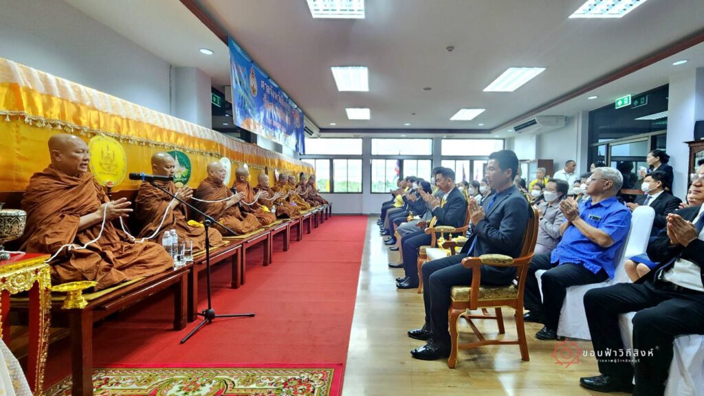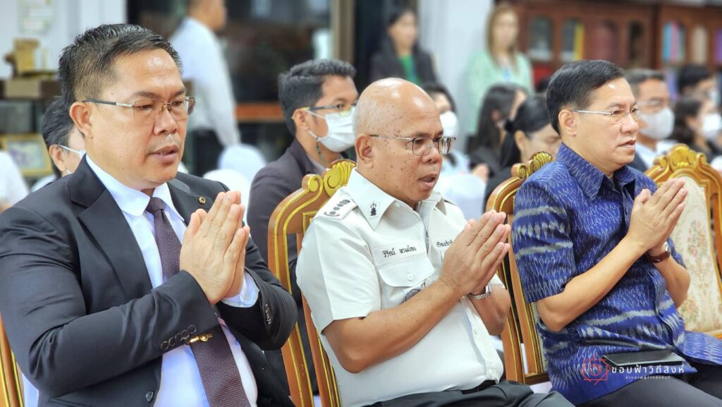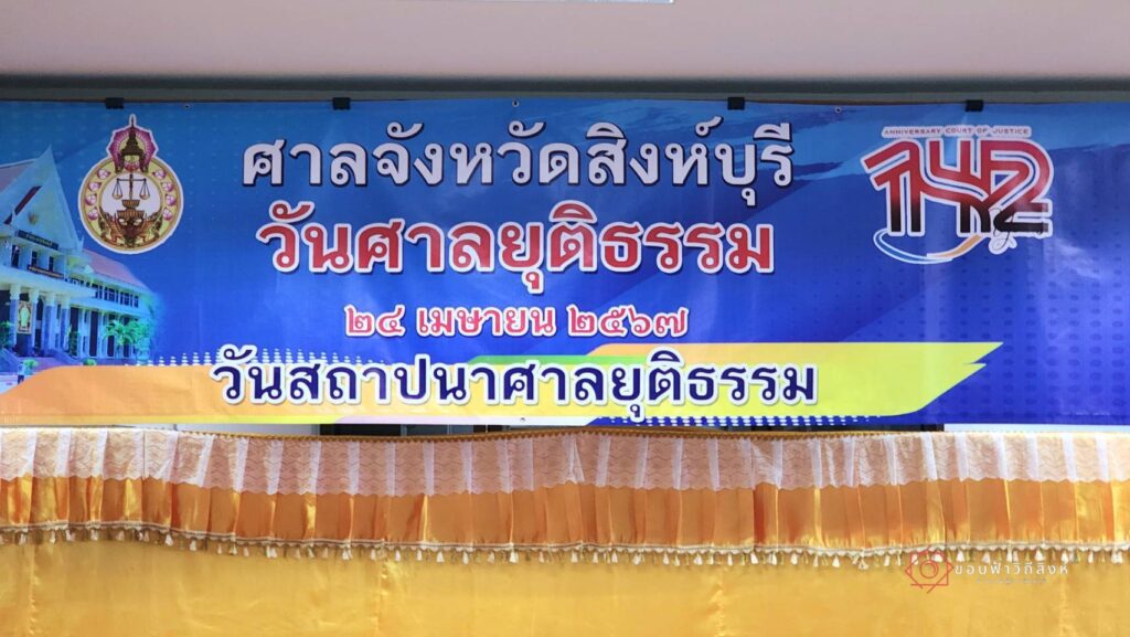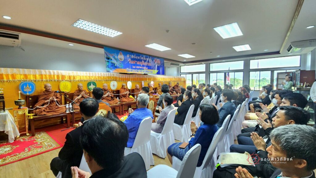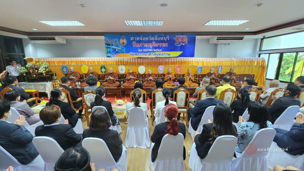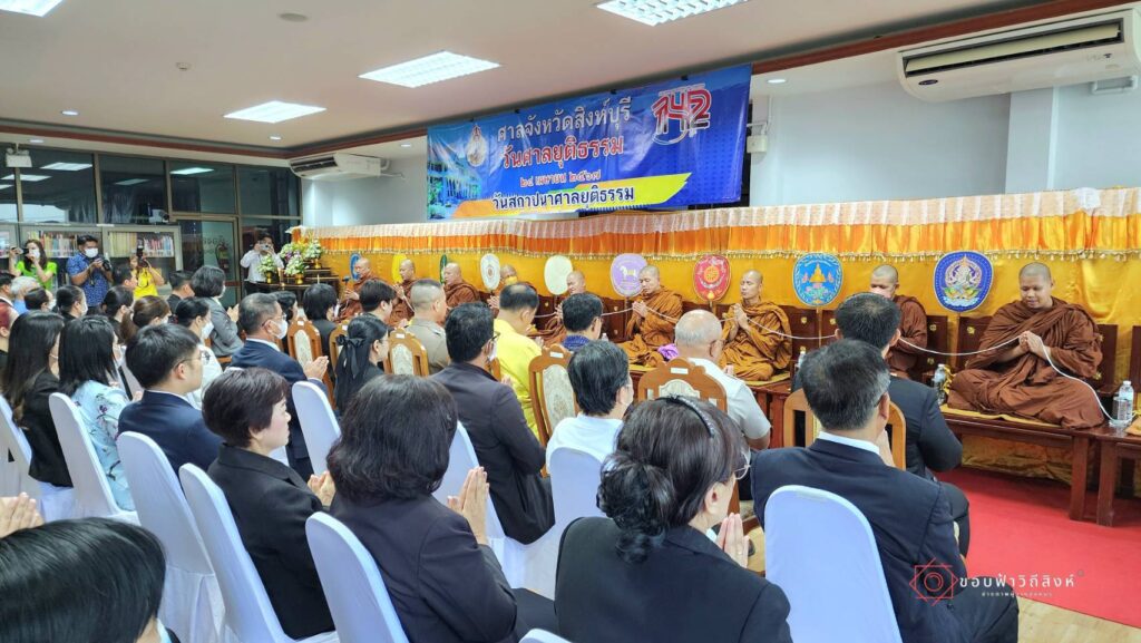 นางสาวปริศนา สมศักดิ์โยธิน ผู้พิพากษาหัวหน้าศาลเยาวชนและครอบครัวจังหวัดสิงห์บุรี พร้อมด้วยผู้พิพากษา ผู้พิพากษาสมทบ หัวหน้าส่วนราชการ ผู้อำนวยการ และเจ้าหน้าที่ ร่วมบำเพ็ญกุศล ถวายภัตตาหารและจตุปัจจัยไทยธรรม แด่พระภิกษุสงฆ์ จำนวน 9 รูป ณ ห้องสมุด ชั้น.3 ศาลจังหวัดสิงห์บุรี อำเภอเมืองสิงห์บุรี จังหวัดสิงห์บุรี
