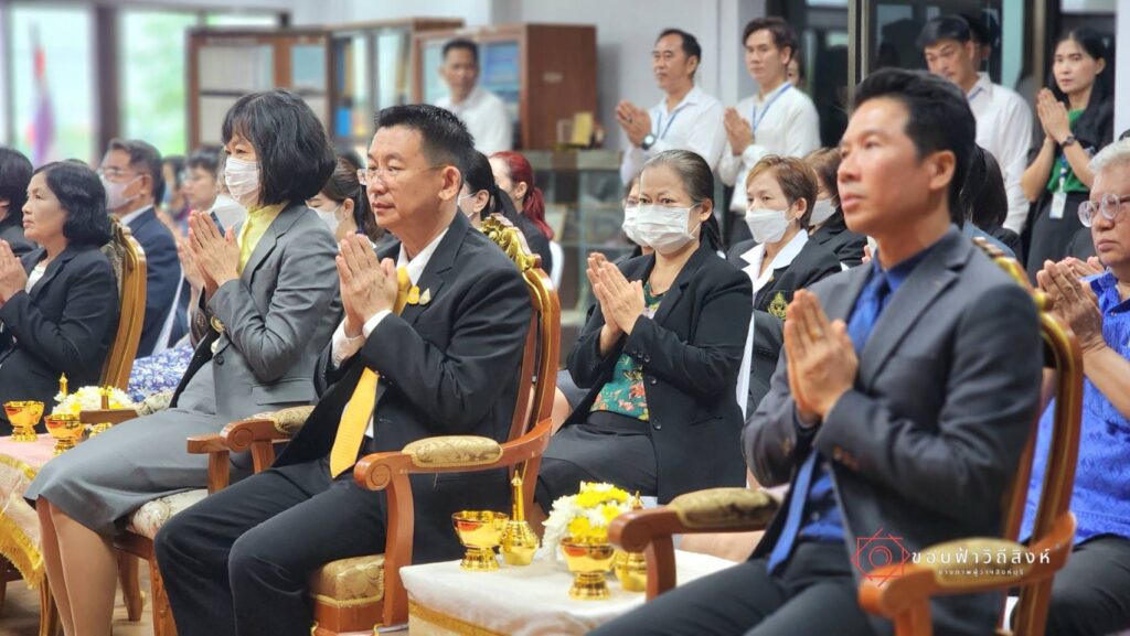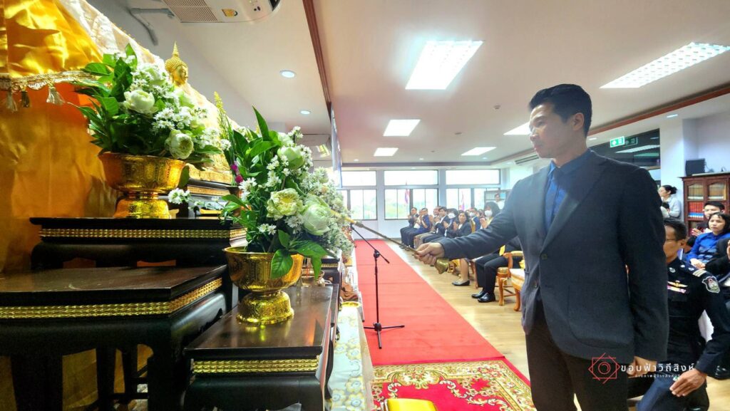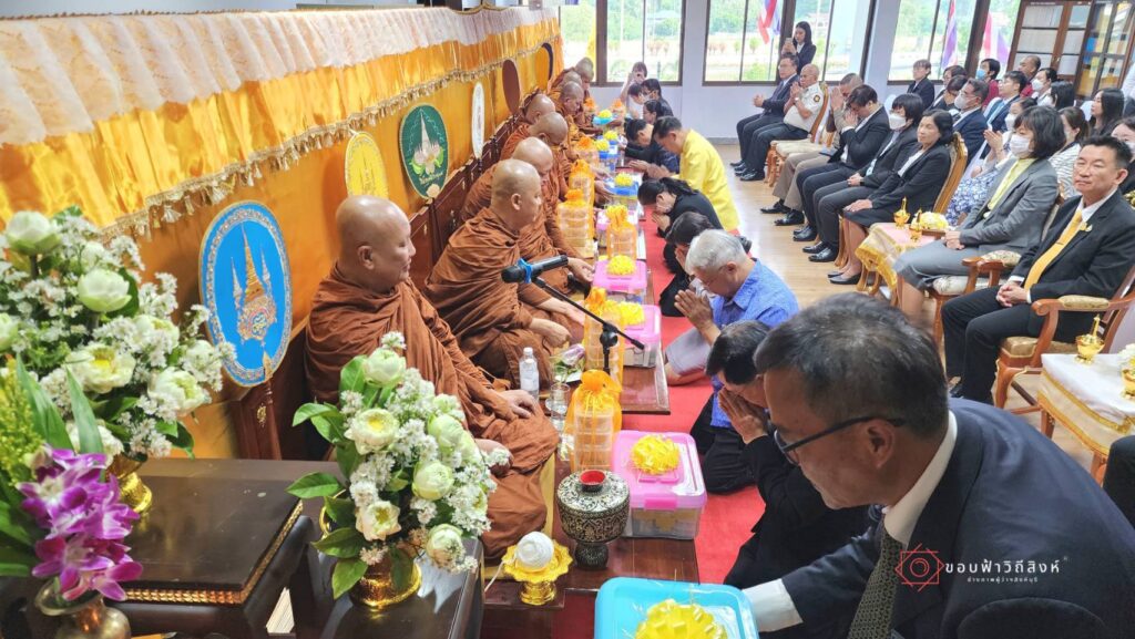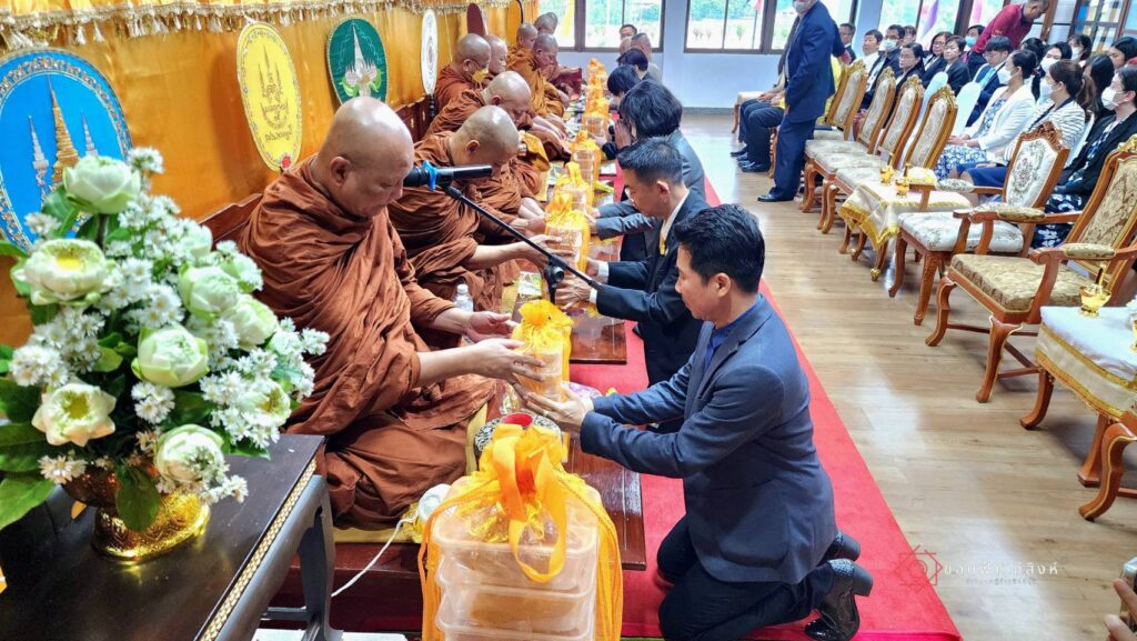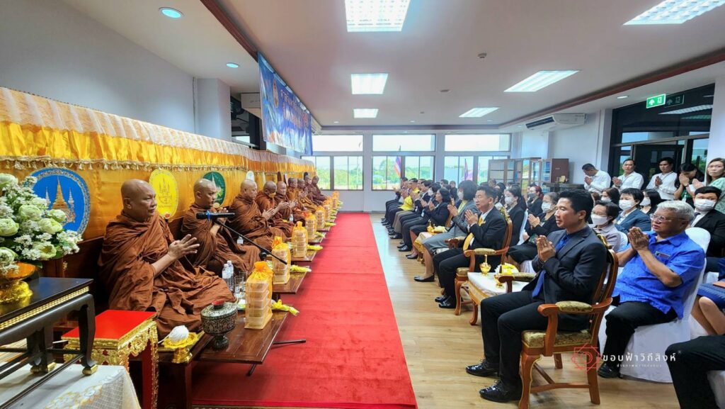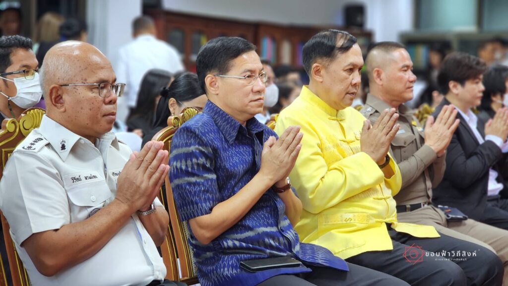 นางสาวปริศนา สมศักดิ์โยธิน ผู้พิพากษาหัวหน้าศาลเยาวชนและครอบครัวจังหวัดสิงห์บุรี พร้อมด้วยผู้พิพากษา ผู้พิพากษาสมทบ หัวหน้าส่วนราชการ ผู้อำนวยการ และเจ้าหน้าที่ ร่วมบำเพ็ญกุศล ถวายภัตตาหารและจตุปัจจัยไทยธรรม แด่พระภิกษุสงฆ์ จำนวน 9 รูป ณ ห้องสมุด ชั้น.3 ศาลจังหวัดสิงห์บุรี อำเภอเมืองสิงห์บุรี จังหวัดสิงห์บุรี