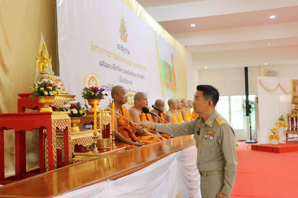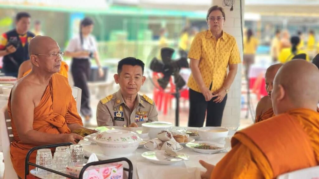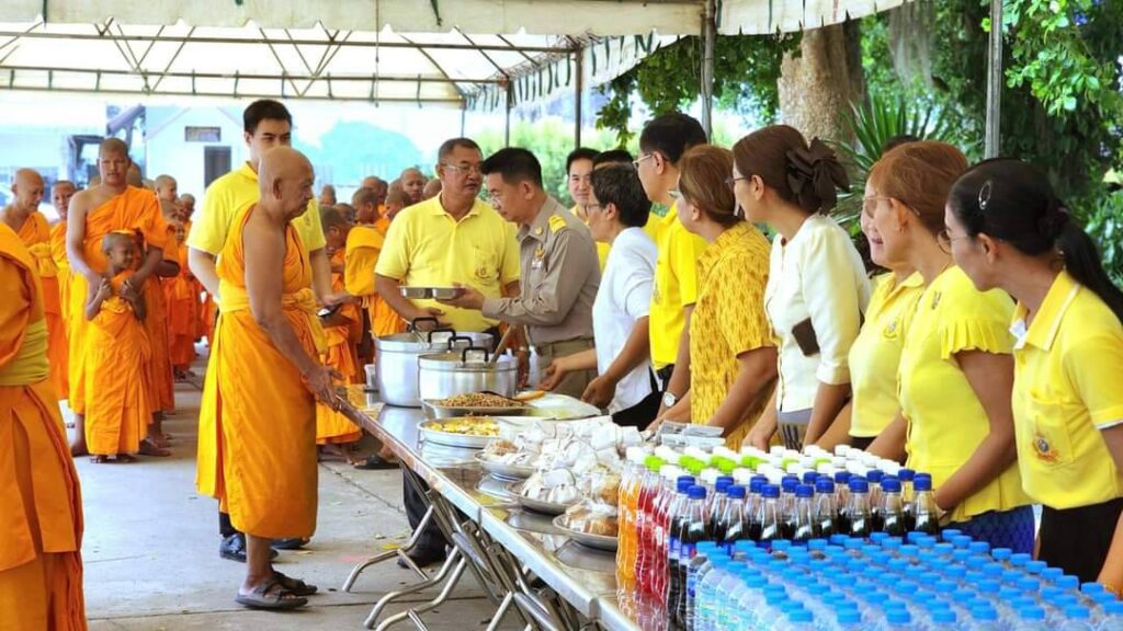วันที่ 23 เมษายน 2567 เวลา 10.00 น.นายสุเมธ ธีรนิติ ผู้ว่าราชการจังหวัดสิงห์บุรีเป็นประธานในพิธีถวายภัตตาหารเพลแด่สามเณรโครงการบรรพชาสามเณรภาคฤดูร้อน เฉลิมพระเกียรติพระบาทสมเด็จพระเจ้าอยู่หัวเนื่องในโอกาสมหามงคลเฉลิมพระชนมพรรษา 6 รอบ 28 กรกฎาคม 2567 ณ อาคารแก้วกลางกายธรรมอุทยานบ้านแป้ง วัดกลางธนรินทร์ ตำบลบ้านแป้ง อำเภอพรหมบุรี โดยมีนายปรีชา ดิลกพรเมธี รองผู้ว่าราชการจังหวัดสิงห์บุรี หัวหน้าส่วนราชการ ข้าราชการและผู้ปกครองสวมใส่เสื้อสีเหลืองเข้าร่วมพิธีฯถวายภัตตาหารเพล