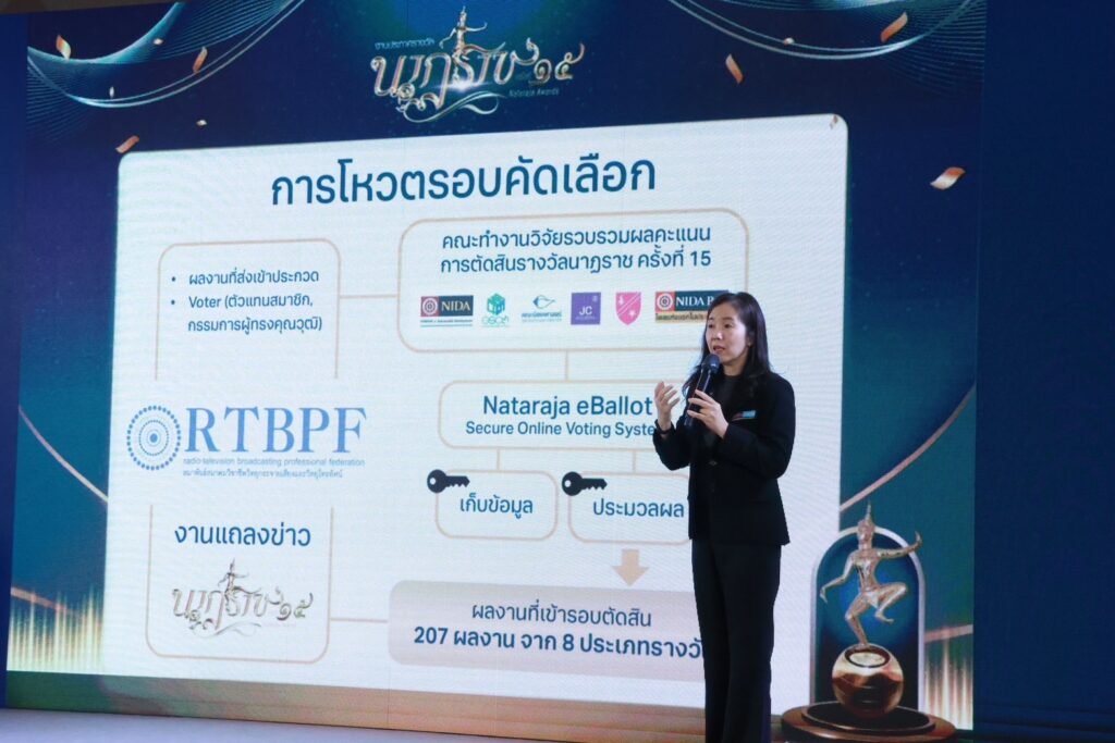 นายเขมทัตต์ พลเดช นายกสมาพันธ์ฯ กล่าวว่า การประกาศผลรางวัลนาฎราชในปีนี้ นับเป็นครั้งที่ 15 ซึ่งปีนี้ จะเข้มข้น และจัดงานประกาศรางวัลให้ยิ่งใหญ่สมกับแนวทางของการประกาศรางวัลนาฏราช เนื่องจากใน 2-3 ปีที่ผ่านมา ได้จัดประกาศรางวัลแบบมินิมอล อันเนื่องมาจากผลพวงโควิด สำหรับปีนี้ กรอบการคัดเลือกและการลงคะแนน ยังคงใช้ระบบการลงคะแนนจากบุคคลในวงการ ที่เรียกว่า voter จากทุกสถานีโทรทัศน์และวิทยุ ตัวแทนจากผู้ผลิตรายการ แล้วส่งผลคะแนนให้ภาคีคณะนิเทศศาสตร์ จาก 4 มหาวิทยาลัยคือ NIDA, มหาวิทยาลัยธรรมศาสตร์, จุฬาลงกรณ์มหาวิทยาลัย และมหาวิทยาลัยอัสสัมชัญ เป็นผู้ประมวลผลและเก็บรวบรวมคะแนน ด้วยระบบมาตรฐานสากล และเป็นความลับ โดยการประกาศรางวัลรอบสุดท้าย สมาชิกสมาพันธ์ฯ จะอาสารับถ่ายทอดสดไปทุกปี แล้วแต่ความพร้อมของสถานีโทรทัศน์นั้นๆ