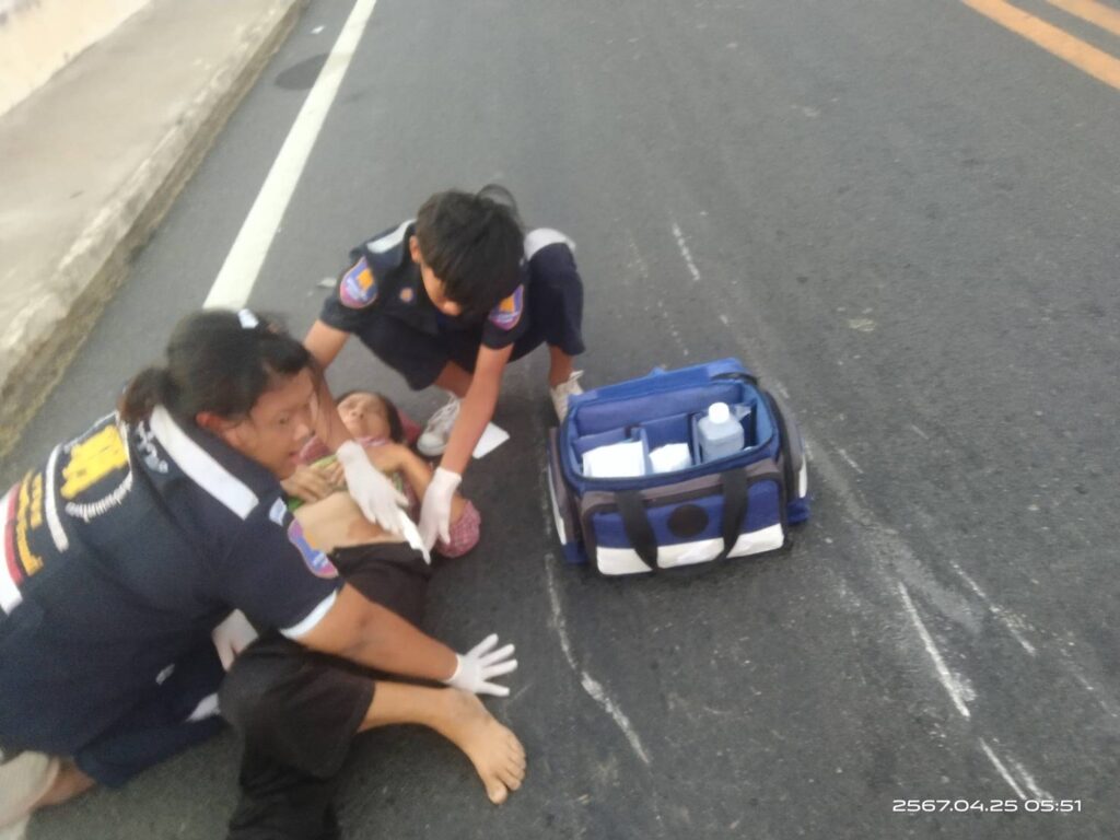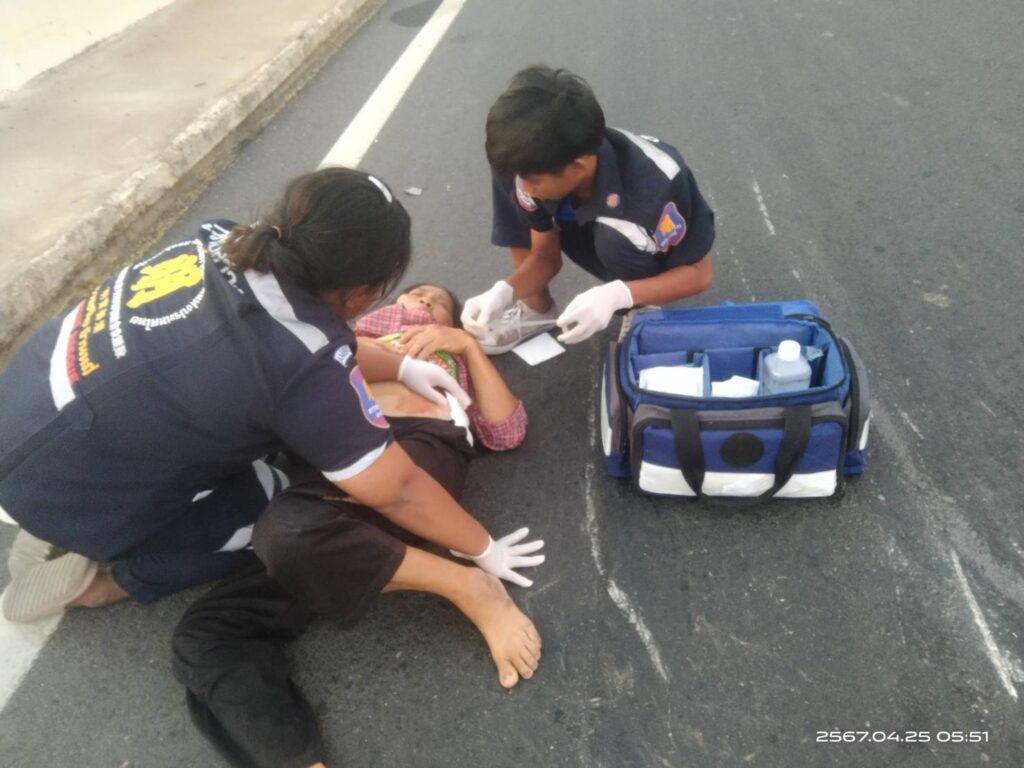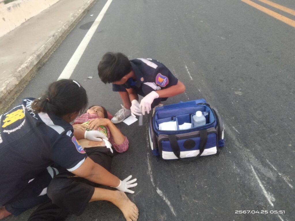 ตรวจสอบที่เกิดเหตุพบพบผู้บาดเจ็บเป็นหญิง ทราบชื่อภายหลังว่า