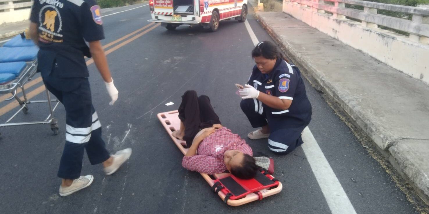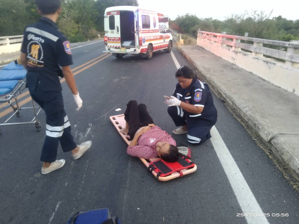 ได้เกิดอุบัติเหตุรถจักรยานยนต์เสียหลักตกข้างทางผู้ขับขี่เป็นเสาใหญ่วัย 61 ปี