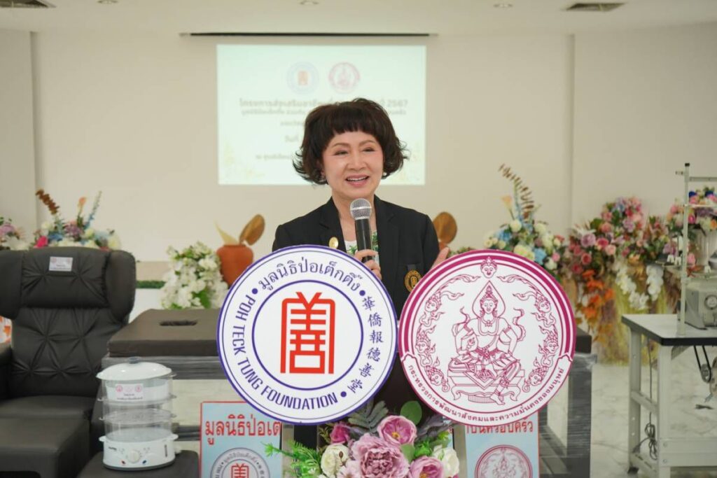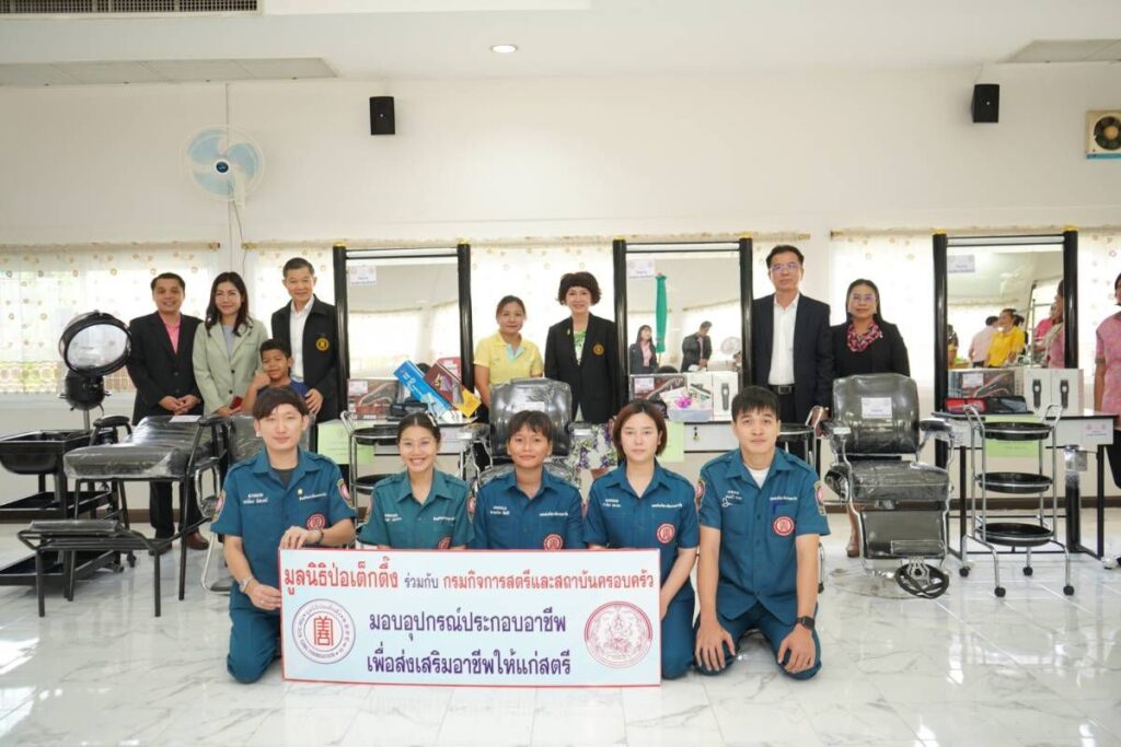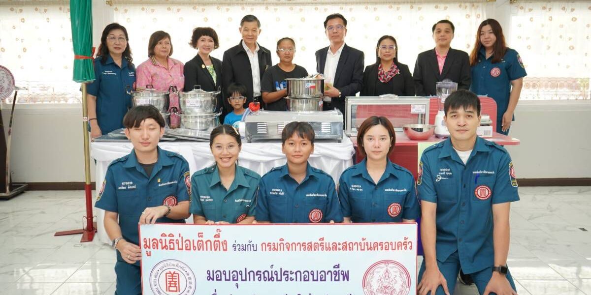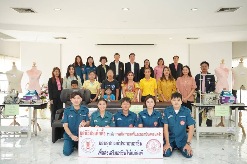 วันนี้ (วันที่ 25 เมษายน 2567) มูลนิธิป่อเต็กตึ๊ง โดย นายวิชิต ชินวงศ์วรกุล รองประธานกรรมการ พร้อมด้วย นางศิริกุล โอภาสวงศ์ กรรมการและเลขาธิการ นางสาวดวงชุตา ติยะพจนพรกุล ผู้ช่วยผู้จัดการฝ่ายสังคมสงเคราะห์ และ นางสาวศุภรัตน์ สมบัติเจริญไทย หัวหน้าแผนกส่งเสริมการศึกษาและอาชีพ นำทีมลงพื้นที่ มอบวัสดุอุปกรณ์ประกอบอาชีพให้กับสตรีที่มีรายได้น้อย มีภาระหน้าที่ดูแลคนในครอบครัว เป็นแม่เลี้ยงเดี่ยว หรือด้อยโอกาสทางสังคม ซึ่งอยู่ในความดูแลของศูนย์เรียนรู้การพัฒนาสตรีและครอบครัวภาคกลาง จังหวัดนนทบุรี และสถานคุ้มครองและพัฒนาอาชีพ บ้านเกร็ดตระการ รวมมอบจำนวน 2 แห่ง จำนวน 7 ราย รวมงบประมาณเป็นเงินทั้งสิ้น 138,570 บาท (หนึ่งแสนสามหมื่นแปดพันห้าร้อยเจ็ดสิบบาทถ้วน) เพื่อให้สามารถประกอบอาชีพเลี้ยงตนเองและครอบครัวได้อย่างยั่งยืน โดยมี นายธนสุนทร สว่างสาลี อธิบดีกรมกิจการสตรีและสถาบันครอบครัว พร้อมด้วย นางสมพิศ ศรีคำแหง ผู้อำนวยการศูนย์เรียนรู้การพัฒนาสตรีและครอบครัวภาคกลาง จังหวัดนนทบุรี ร่วมในพิธี ณ ศูนย์การเรียนรู้การพัฒนาสตรีและครอบครัวภาคกลาง จังหวัดนนทบุรี