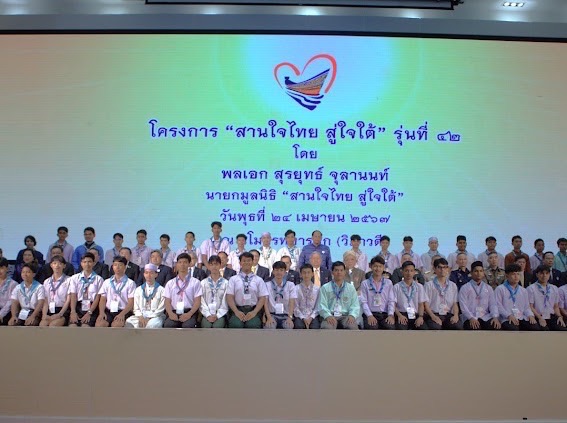 วันพุธที่ 24 เมษายน 2567 เวลา 10.30 น. พลเอก สุรยุทธ์ จุลานนท์ นายกมูลนิธิ “สานใจไทย สู่ใจใต้” เป็นประธานในพิธีเปิดโครงการ “สานใจไทย สู่ใจใต้” รุ่นที่ 42 ณ ห้องมัฆวานรังสรรค์ ชั้น 3 สโมสรทหารบก (ส่วนกลาง) วิภาวดี กรุงเทพฯ