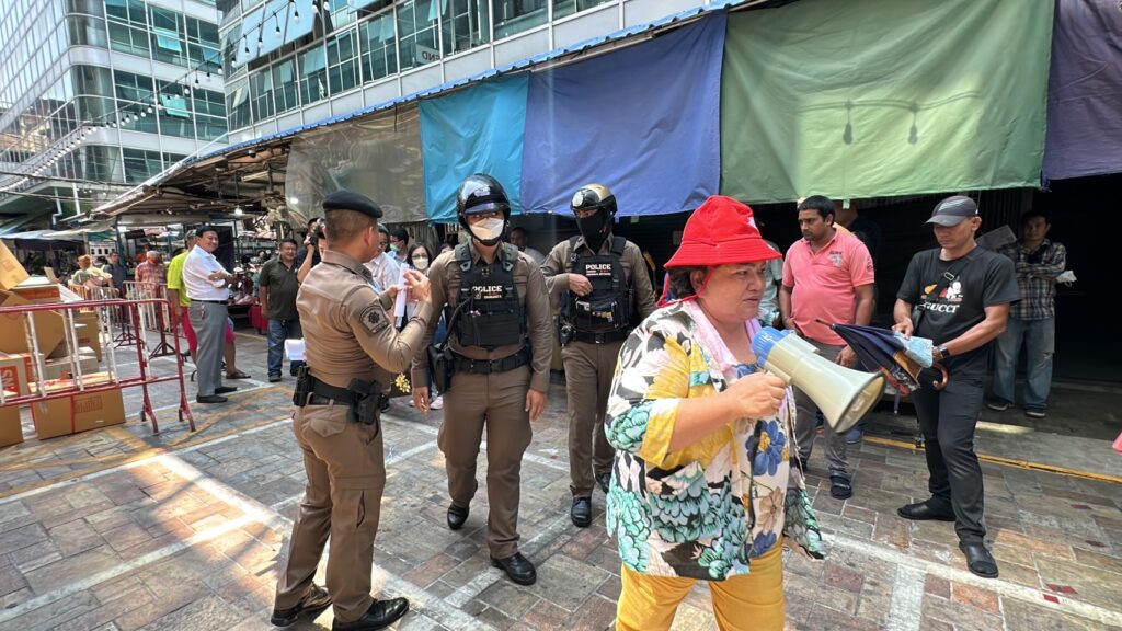 วันที่ 25 เม.ย.2567 เวลา 13.30 น. ที่บริเวณตลาดคลองถม เซ็นเตอร์ ถนนวรจักร แขวงป้อมปราบ เขตป้อมปราบศัตรูพ่าย กทม. นายกฤษฎา อินทามระ ฉายาทนายปราบโกง เดินทางมาให้ความช่วยเหลือพ่อค้าแม่ค้าตลาดคลองถม ที่ถูกเจ้าพนักงานบังคับคดี กองยึดทรัพย์สิน กรมบังคับคดี เฃ้าทำการขับไล่ตามคำสั่งศาลแพ่งกรุงเทพใต้ คดึหมายเลขแดงที่ ม.73/2552 โดยมี พ.ต.ต.รุ่งโรจน์ เนียขุนทดสวป.สน.พลับพลาไชย เขต 1 ที่เดินทางมาร่วมดูแลความสงบเรียบร้อย