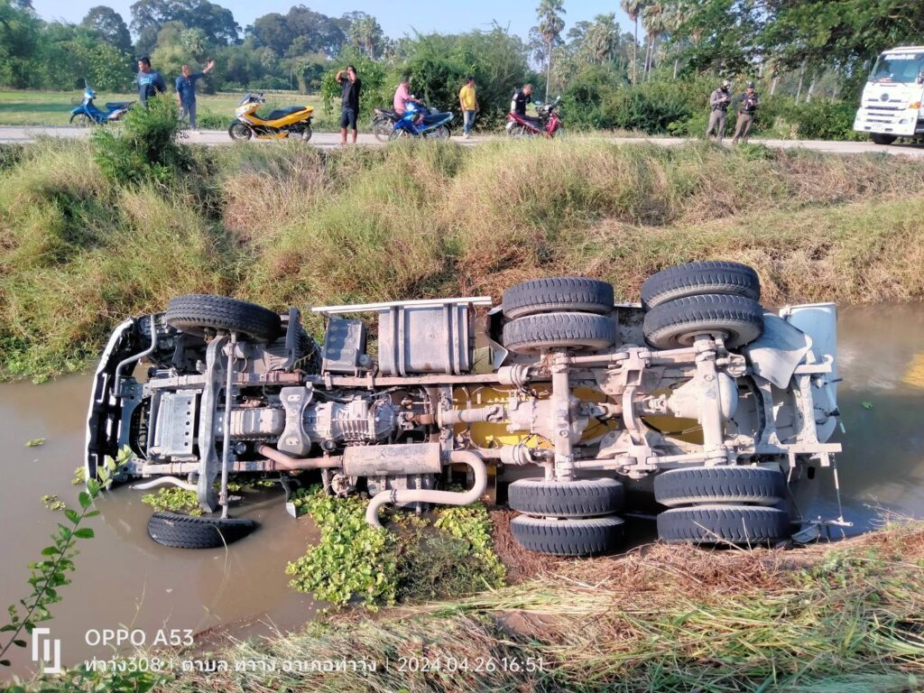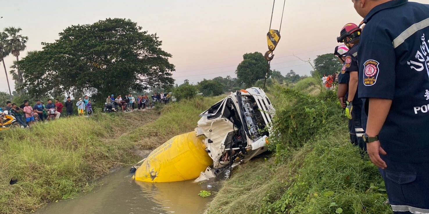ในที่เกิดเหตุพบรถโม่ปูนสีขาวหมายเลขทะเบียน 833 288 ลพบุรีพลิกคว่ำอยู่ในคลองหลังวัดเจษหมู่ที่ 8 ตำบลท่าวุ้งถนนสายคันคลองมุ่งหน้าวัดลำพารามอำเภอเมืองลพบุรีจังหวัดลพบุรี มีนาย ประทีป ใจเย็น อายุ 55 ปี อยู่บ้านเลขที่ 1064 หมู่ 2 ตำบลท่าแค อำเภอเมืองลพบุรี จังหวัดลพบุรี เป็นผู้ขับขี่รถโม่ปูนคันดังกล่าวและติดอยู่ภายในรถเจ้าหน้าที่มูลนิธิกู้ภัยปอเต็กตึ้งจึงได้เข้าให้การช่วยเหลือด้วยเครื่องมือตัดทางพบว่านายประทีป ใจเย็น เสียชีวิตในที่เกิดเหตุ และในที่เกิดเหตุเป็นถนนค่อนข้างแคบติดกับคลองน้ำเจ้าหน้าที่กู้ภัยป่อเต็กตึ้งจึงได้ช่วยกันนำร่างผู้เสียชีวิตขึ้นมาจากน้ำและนำส่งโรงพยาบาลท่าวุ้งเพื่อชันสูตรหาสาเหตุและแจ้งให้ทราบต่อไปส่วนเบื้องต้นน่าจะเกิดจากอากาศที่ร้อนจัดทำให้ นายประทีป ใจเย็นเกิดอาการเพลียแดดจนทำให้วูบหมดสติแล้วเกิดอุบัติเหตุดังกล่าว