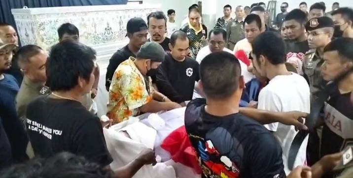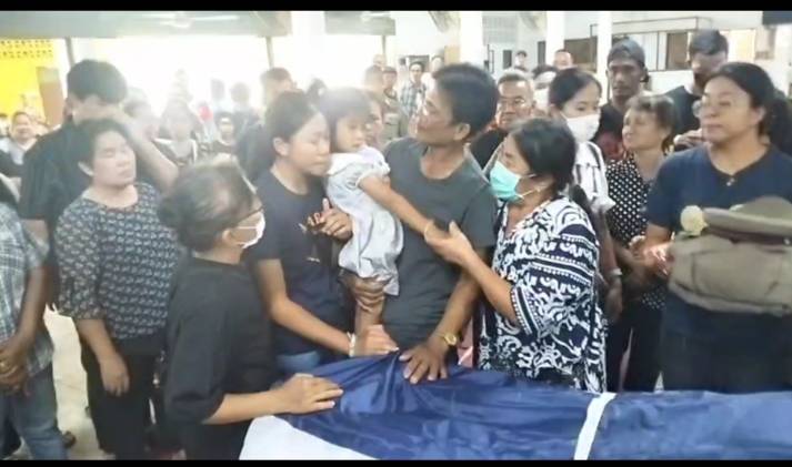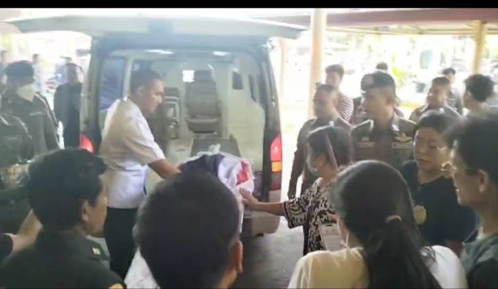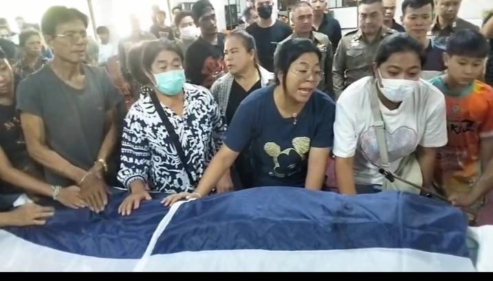 เก็บไว้ในตู้เย็นโลงเย็น ก่อน รอ น้ำ พระราชทานอาบศพ คิดว่า พรุ่งนี้น้ำพระราชทานอาบศพ ทางตำรวจทางหลวงจะเอามา จัดการก่อน วันนี้ยังไม่มีการสวด