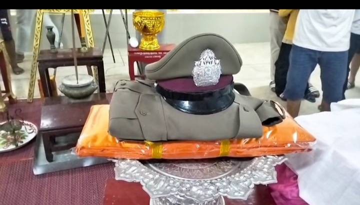 ครอบครัว-เพื่อนตำรวจ ร่วมพิธีเคลื่อนร่างด.ต.ปิยะนันท์ สีเสื้อ หรือ ดาบต้าร์ จากโรงพยาบาลตำรวจ กรุงเทพมหานคร ไปยังวัดสะพานอิฐ ตำบลทะเลชุบศร อำเภอเมือง จังหวัดลพบุรี ซึ่งเป็นบ้านเกิด ของดาบต้าร์