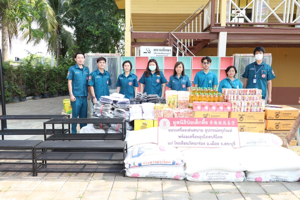 วันนี้ (วันอังคารที่ 30 เมษายน พ.ศ. 2567) มูลนิธิป่อเต็กตึ๊ง นำโดย นางศิริกุล โอภาสวงศ์ กรรมการและเลขาธิการ เป็นประธานในพิธี พร้อมด้วย นางศิริพร กระจ่างหล้า ผู้จัดการฝ่ายสังคมสงเคราะห์ นางสาวดวงชุตา ติยะพจนพรกุล ผู้ช่วยผู้จัดการฝ่ายสังคมสงเคราะห์ และ นางสาวศุภรัตน์ สมบัติเจริญไทย หัวหน้าแผนกส่งเสริมการศึกษาและอาชีพ ร่วมในพิธี มอบเครื่องเล่นสนาม อุปกรณ์ครุภัณฑ์ พร้อมเครื่องอุปโภคบริโภคแก่เด็กนักเรียนโรงเรียนวัดนาร่อง อ.เมือง จ.สระบุรี อาทิ เครื่องเล่นสนามชุดปีนป่ายหนอนน้อย ตู้เหล็กเก็บเอกสารบานเลื่อน ชั้นวางของอเนกประสงค์ ชั้นวางของ ชั้นวางหนังสือ ชั้นวางรองเท้านักเรียน ตะแกรงคัดขยะ 3 ช่อง ชุดนักเรียน กางเกงวอร์ม และกระเป๋านักเรียน เป็นต้น พร้อมด้วยเครื่องอุปโภคบริโภค ประกอบด้วย ข้าวสาร ปลากระป๋อง น้ำมันพืช เส้นหมี่ขาว และขนมจันอับ รวมมูลค่า 208,076 บาท (สองแสนแปดพันเจ็ดสิบหกบาทถ้วน) นอกจากนี้ นายชาญกิจ วิทยาวรากรณ์ กรรมการมูลนิธิฯ ได้สนับสนุนลูกฟุตบอลจำนวน 30 ใบ พร้อมด้วย ลูกอม จำนวน 1 ลัง โดยมี นางสาวจิรนันท์ สาระเดช รักษาการผู้อำนวยการโรงเรียนวัดนาร่อง พร้อมด้วย ผู้แทนเด็กและเยาวชน เป็นผู้รับมอบ ณ โรงเรียนวัดนาร่อง อ.เมือง จ.สระบุรี