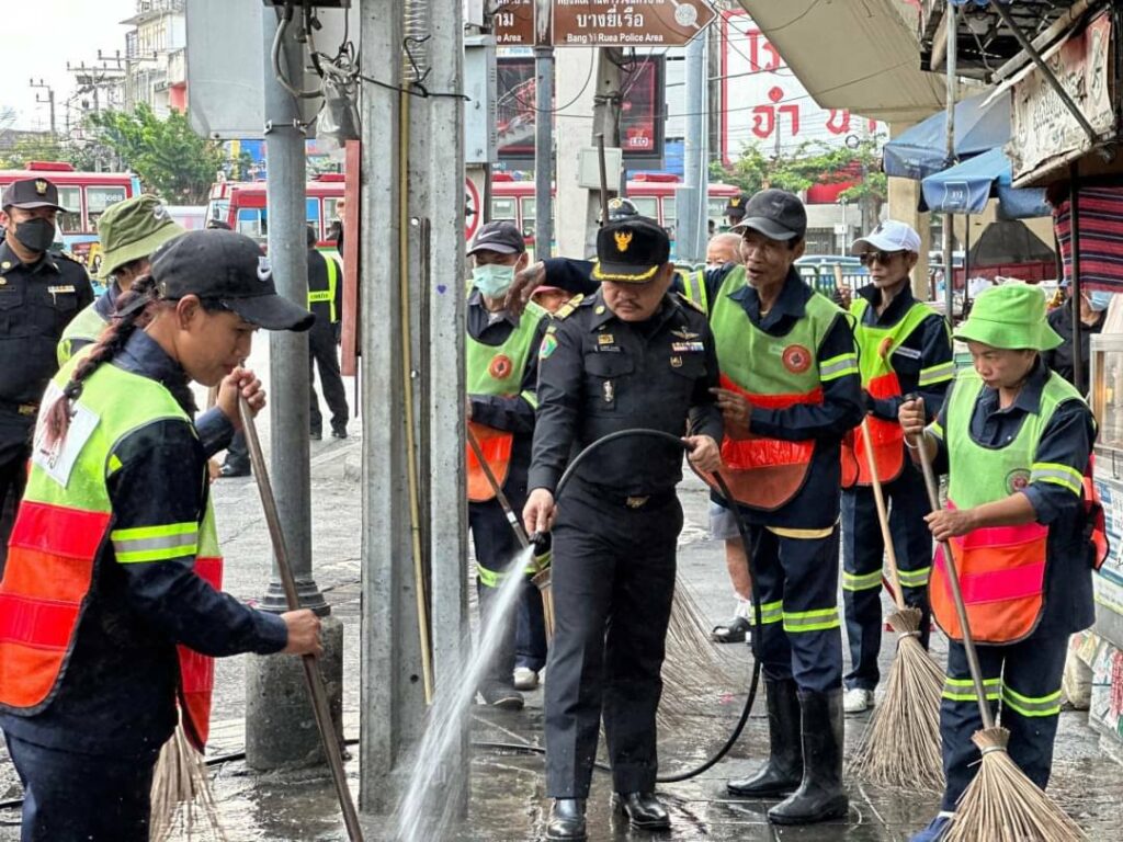 เมื่อวันที่ 29 เมษายน 2567 ผ่านมา ว่าที่ร้อยตรี เดชาธร แสงอำนาจ ผู้อำนวยการเขตธนบุรี พร้อมด้วย นายบำรุง สำเนียงงาม ผู้ช่วยผู้อำนวยการเขตธนบุรี มอบหมายให้ ร.อ.ทวีศักดิ์ พรหมสุวิชา หัวหน้าฝ่ายเทศกิจเขตธนบุรี นำกำลัง สายตรวจเทศกิจธนบุรี ร่วมกับ จนท.ฝ่ายรักษาฯ และ ผู้ประกอบการร้านค้า ในพื้นที่ ร่วมกัน ปรับปรุงภูมิทัศน์ล้างทำความสะอาดบาทวิถี จุดพื้นที่ผ่อนผ่อนทำการค้า บริเวณตลาดสี่แยกบ้านแขก ถนนอิสรภาพ แขวง หิรัญรูจี เขตธนบุรี กทม.