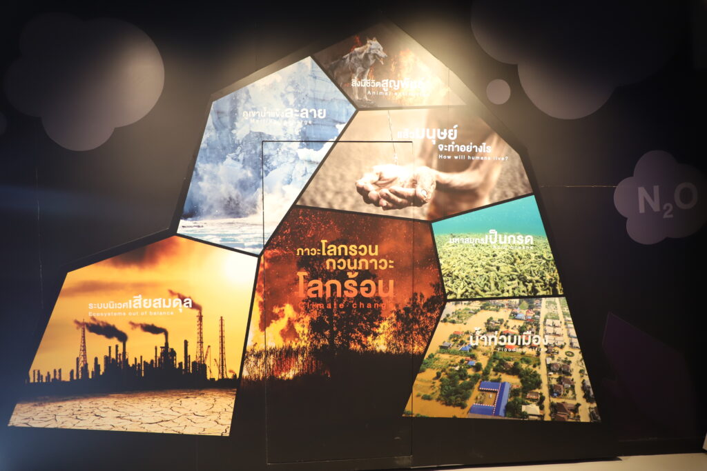 ซึ่งศูนย์นี้จะนำเสนอเรื่องราวเพื่อสร้างความเข้าใจเกี่ยวกับภาวะโลกร้อนรวมถึงแนวทางที่เป็นกิจกรรมลดก๊าซเรือนกระจกที่สำคัญ อีกทั้งยังเป็นแหล่งแลกเปลี่ยน เรียนรู้ และถ่ายทอดองค์ความรู้ต่างๆ ที่เกี่ยวกับการลดก๊าซเรือนกระจกของชุมชนโดยแบ่งเป็น 3 โซน ประกอบด้วย โซนที่ 1 ภารกิจพิชิตโลกร้อน (Climate Mission) เป็นห้องแสดงภาพยนตร์ประกอบ แสง สี เสียง ที่สนุกสนานเล่าเรื่องปรากฏการณ์การเกิดก๊าซเรือนกระจก ซึ่งนำไปสู่ภาวะโลกร้อน โซนที่ 2 โลกร้อนหรือเย็น เป็นที่ตัวเรา (Carbon Solution) ห้องแสดงที่เชิญชวนทุกคนมาช่วยลดก๊าซเรือนกระจกผ่านกิจกรรมสนุกสนาน ต่าง ๆ เช่น ปั่นจักรยาน ช้อปช่วยโลก ปลูกต้นไม้ตลอดจนเทคโนโลยีลดก๊าซเรือนกระจก เป็นต้น และโซนที่ 3 เมืองคาร์บอนต่ำ สุขอาศัยอย่างยั่งยืน (Low Carbon City) ห้องนิทรรศการที่ทุกคนที่เข้ามาเยี่ยมชมรู้จักโครงการด้านการอนุรักษ์พลังงานและสิ่งแวดล้อมขององค์การบริหารส่วนตำบลท่ามะนาว และรู้จักองค์การบริหารจัดการก๊าซเรือนกระจก (องค์การมหาชน)ผู้ทำงานขับเคลื่อนการลดการปล่อยก๊าซเรือนกระจก นอกจากนี้ยังมีกิจกรรมอีกมากมายให้ศึกษาเรียนรู้ในการช่วยกันลดก๊าซเรือนกระจก เพื่อพิชิตโลกร้อน