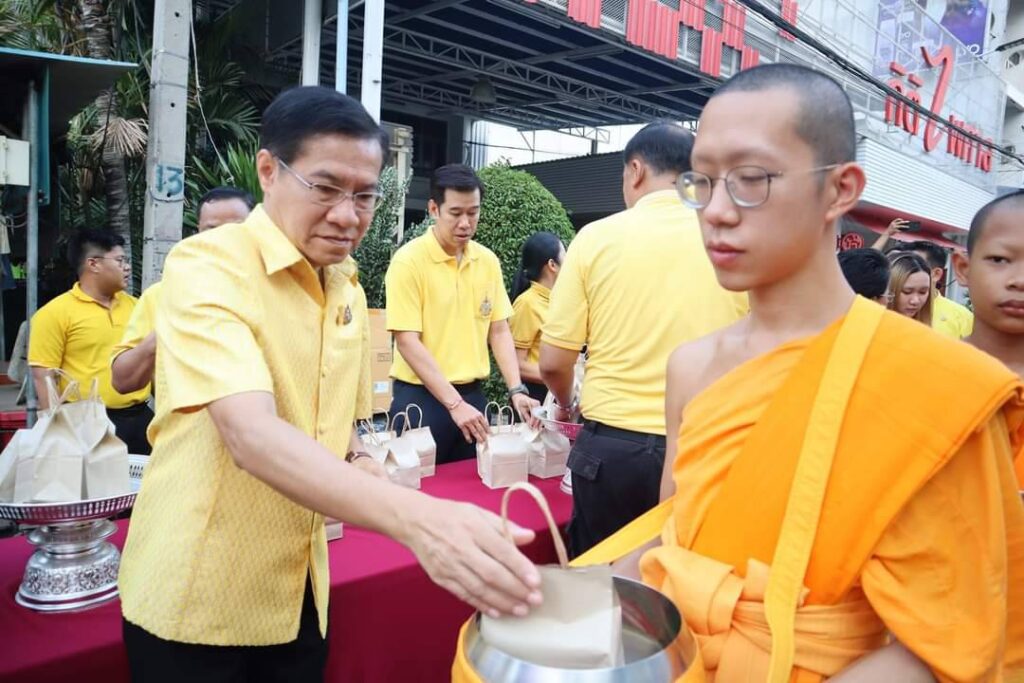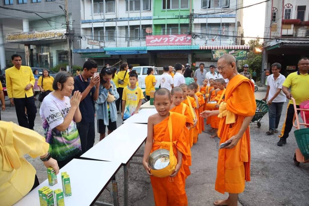 วันที่ 1 พฤษภาคม 2567 เวลา 06.00 น. นายสุเมธ ธีรนิติ ผู้ว่าราชการจังหวัดสิงห์บุรี พร้อมด้วย นางวาสนา ธีรนิติ นายกเหล่ากาชาดจังหวัดสิงห์บุรี นายวราดิศร อ่อนนุช นายปรีชา ดิลกพรเมธี รองผู้ว่าราชการจังหวัดสิงห์บุรี นายอำเภอ หัวหน้าส่วนราชการ กรรมการเหล่ากาชาดจังหวัดสิงห์บุรี ข้าราชการ เจ้าหน้าที่เหล่ากาชาดจังหวัดสิงห์บุรี และประชาชน ร่วมกิจกรรมทำบุญตักบาตรข้าวสารอาหารแห้งแด่พระภิกษุสงฆ์ สามเณร ตามโครงการบรรพชาสามเณรภาคฤดูร้อนเฉลิมพระเกียรติ พระบาทสมเด็จพระเจ้าอยู่หัว เนื่องในโอกาสวันเฉลิมพระชนมพรรษา 6 รอบ 28 กรกฏาคม 2567 จังหวัดสิงห์บุรี ณ บริเวณถนนขุนสรรค์ตั้งแต่หน้าโรงพยาบาลสิงห์บุรีถึงวัดโพธิ์แก้วนพคุณ ตำบลบางพุทรา อำเภอเมืองสิงห์บุรี จังหวัดสิงห์บุรี