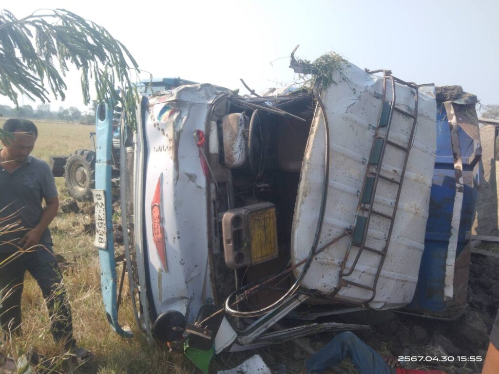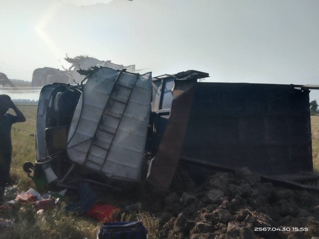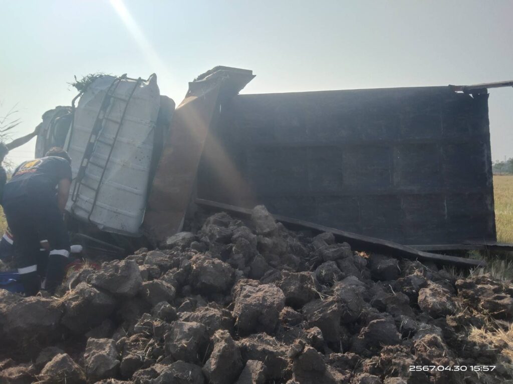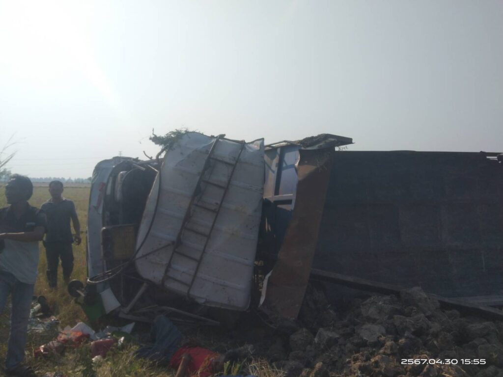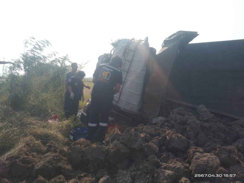 ได้เกิดอุบัติเหตุรถบรรทุกตกข้างทางได้มีผู้บาดเจ็บที่เกิดเหตุ