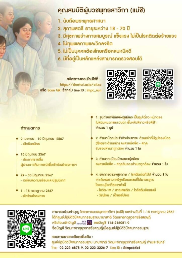 สามารถร่วมทำบุญ โครงการบวชพุทธสาวิกา (แม่ชี)