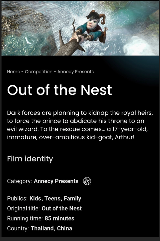 ล่าสุดสำหรับการ์ตูนแอนิเมชัน“Out of the Nest” องครักษ์พิทักษ์เจี๊ยบ การ์ตูนฝีมือคนไทยที่จับมือร่วมกับทีมงานจากทั้งฝั่ง Hollywood และ ฝั่งจีน ได้สร้างปรากฏการณ์ใหม่ให้วงการแอนิเมชันไทยอีกครั้ง หลังจากที่ได้รับคัดเลือกเป็น 1ใน 12 ภาพยนตร์แอนิเมชัน ให้เป็น “Annecy Selections” หมวด “Annecy Presents” ในงาน Annecy International Animation Film Festival ปี 2024 เป็นงานเทศกาลภาพยนตร์แอนิเมชันที่ใหญ่ที่สุดในโลก ที่ไม่ได้เน้นเรื่องการแข่งขันแต่เน้นในเรื่องความสมบูรณ์ในการผลิตในโลกของแอนิเมชัน โดยคัดเลือกจากภาพยนตร์แอนิเมชันที่ดี และมีคุณภาพระดับโลกสำหรับทุกเพศทุกวัย ซึ่งมีผลงานที่ส่งมาคัดเลือกถึง 3,400 เรื่อง จาก 100 กว่าประเทศ นับเป็นก้าวที่ยิ่งใหญ่ของการ์ตูนไทยที่ได้ก้าวไกลไปในระดับโลก