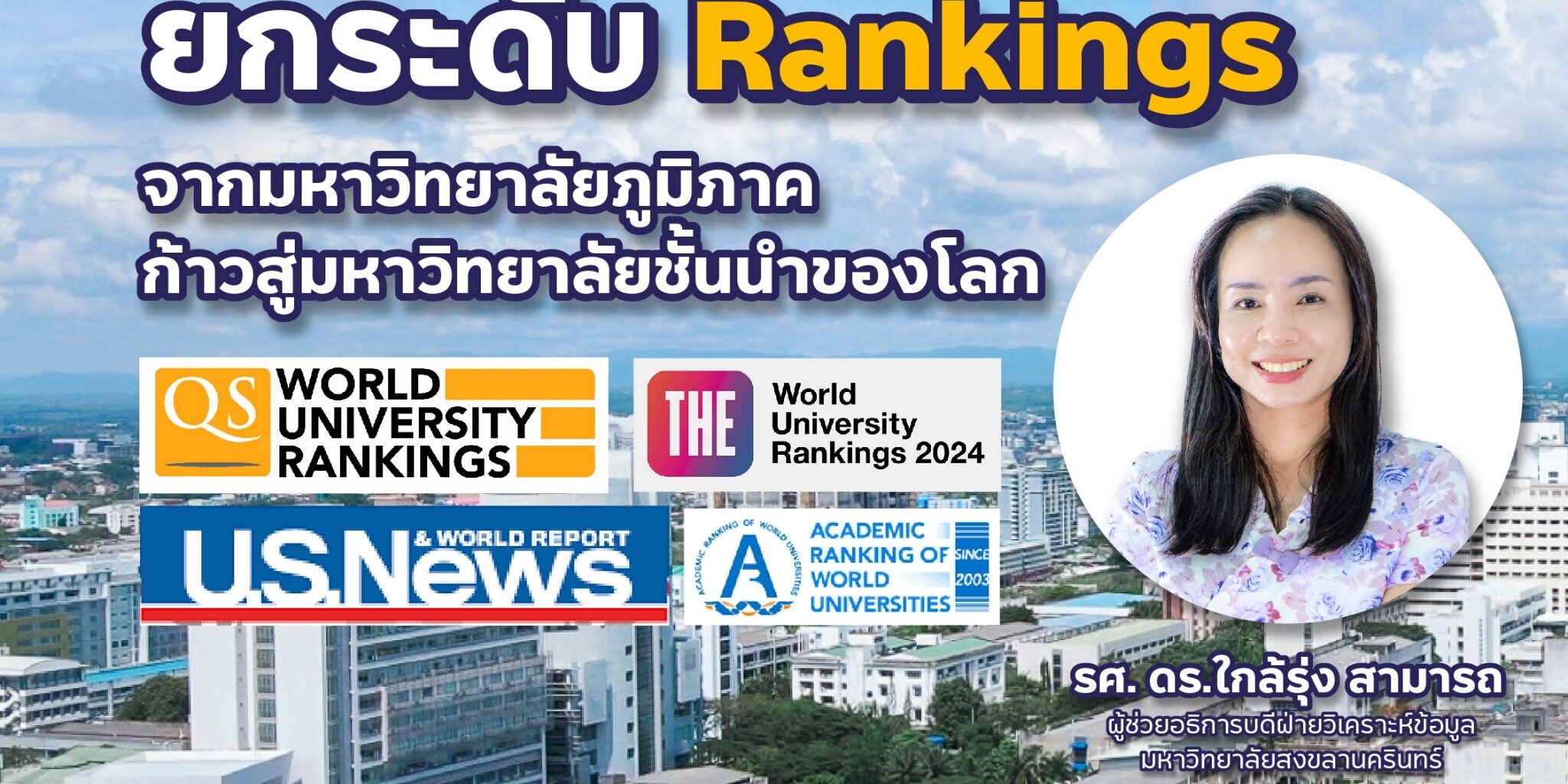 รศ.ดร.ใกล้รุ่ง สามารถ ผู้ช่วยอธิการบดีฝ่ายวิเคราะห์ข้อมูล มหาวิทยาลัยสงขลานครินทร์ กล่าวว่า Rankings คือเรื่องของการจัดอันดับมหาวิทยาลัยโลก ซึ่งมีสถาบันที่สร้างตัวชี้วัดขึ้นมาประเมินมหาวิทยาลัยต่าง ๆ ว่าอยู่ในตำแหน่งหรืออันดับใดของโลก ปัจจุบันที่พบเห็นได้บ่อยสุดคือ QS World University Rankings และ Times Higher Education World University Rankings (THE) โดย Rankings จะถูกแบ่งออกเป็นหลายระดับขึ้นอยู่กับวัตถุประสงค์ และประเด็นที่ถูกนำมาวัดประสิทธิภาพ ประสิทธิผลในแต่ละเรื่องไป