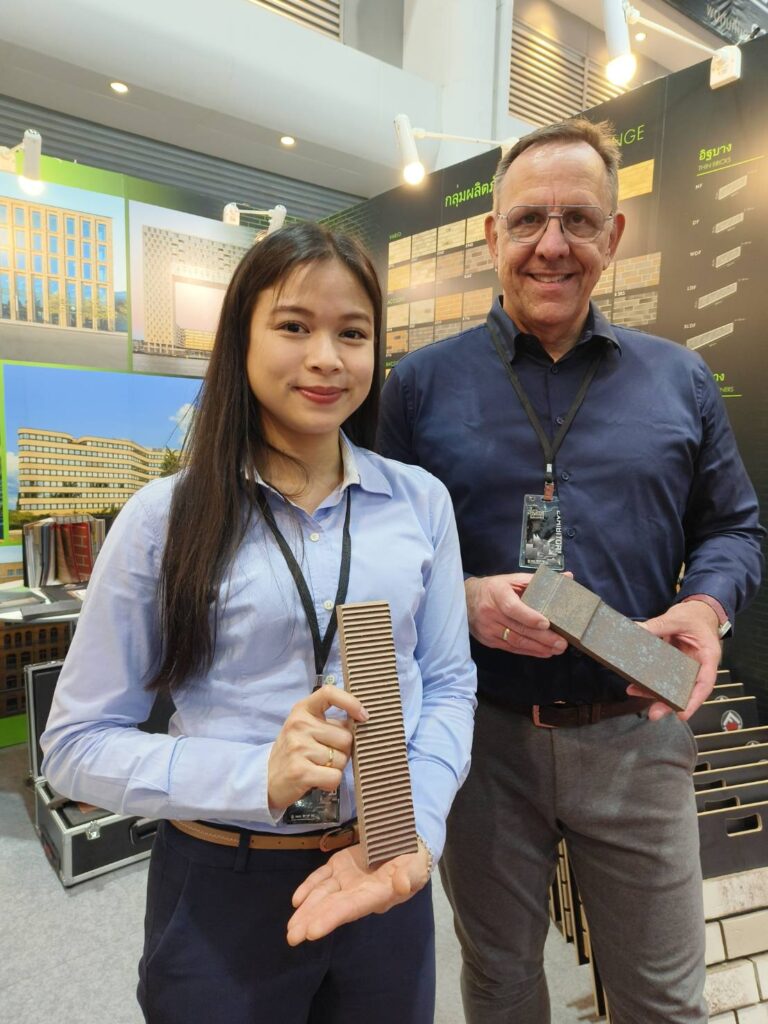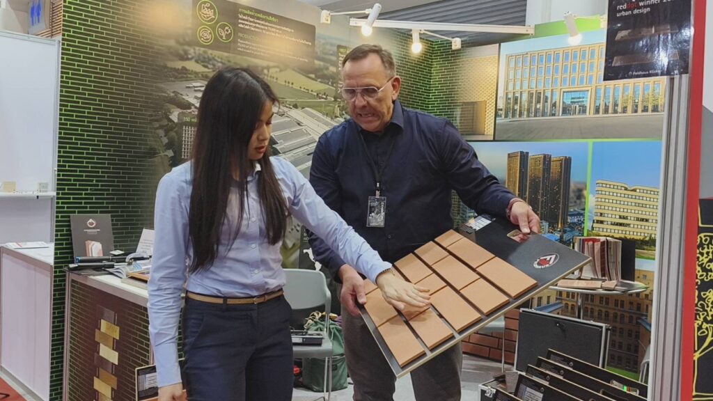 ผลิตภัณฑ์มีความหลากหลายมากกว่า 2,500 ผลิตภัณฑ์ ที่มีเอกลักษณ์เฉพาะตัวจากสี ขนาด และผิวสัมผัสที่สามารถสร้างลักษณะเด่นให้กับอาคารได้อย่างลงตัว การผลิตใช้วัตถุดิบจากธรรมชาติ 100% อีกทั้งด้วยความร่วมมือกับบริษัทและสถาปนิกที่มีชื่อเสียง ทำให้ Feldhaus Klinker เป็นแบรนด์ชั้นนำและได้รับความไว้วางใจมาอย่างยาวนาน สำหรับงานสถาปนิก’67 นี้ เป็นปีแรกที่ Feldhaus Klinker เข้าร่วมเป็นหนึ่งในผู้จัดแสดง”