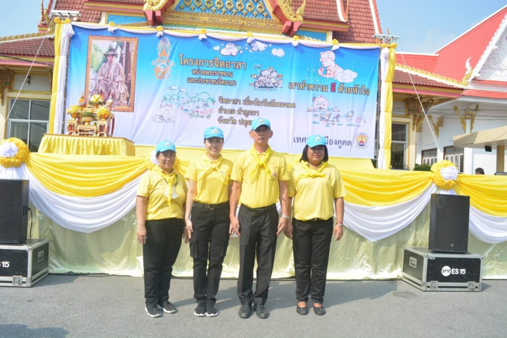 เมื่อวันที่ 3 พฤษภาคม 2567 เวลา 09.00 น. ณ วัดลาดสนุ่น ตำบลคูคต อำเภอลำลูกกา จังหวัดปทุมธานี นายคมสัน ญาณวัฒนา รองผู้ว่าราชการจังหวัดปทุมธานี เป็นประธานในพิธีเปิดกิจกรรม จิตอาสา เราทำความดีด้วยหัวใจ เนื่องในวันฉัตรมงคล วันที่ระลึกถึงพระราชพิธีพระบรมราชาภิเษกพระบาทสมเด็จพระวชิรเกล้าเจ้าอยู่หัว เป็นพระมหากษัตริย์ พร้อมด้วย หัวหน้าส่วนราชการ ผู้บริหารองค์กรปกครองส่วนท้องถิ่นฯ นายอำเภอ ทหาร ตำรวจ กำนัน ผู้ใหญ่บ้าน จิตอาสา 904 จิตอาสาพระราชทาน และประชาชน ร่วมมือร่วมใจทำกิจกรรมจิตอาสาพัฒนาศาสนสถาน ทำความสะอาดสถานที่สาธารณะ แหล่งน้ำ ตัดต้นไม้ ล้างโบสถ์ พื้น/ลาน เก็ยกวาดขยะ ปล่อยปลา เท EM ลงในลำคลอง แพทย์เคลื่อนที่ และกิจกรรมดนตรีในสวน บริเวณวัดลาดสนุน ตำบลคูคต อำเภอลำลูกกา จังหวัดปทุมธานี
