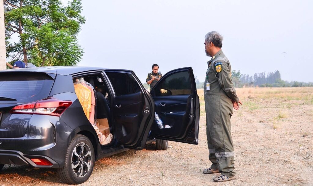 ภายในรถยนต์ของผู้ได้รับบาดเจ็บเป็นหญิง 1 ราย ทางเท้าแตะ 1 ข้างที่อยู่ข้างรถ ตรวจสอบภายในรถพบเตาที่ยังมีไฟลุกอยู่ ทางเจ้าหน้าที่ได้นำออกมาวางไว้ที่ด้านนอก