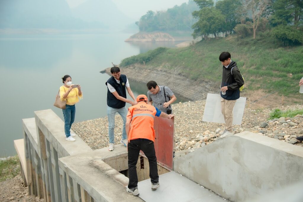 จุดที่ 4 ) “เขื่อนแม่สรวย” นำโดย รศ.ดร.สุทธิศักดิ์ ศรลัมพ์ จาก มหาวิทยาลัยเกษตรศาสตร์ ซึ่งได้รับเกียรติจาก นายศุภชัย พินิจสุวรรณ ผู้อำนวยการส่วนวิศวกรรม กรมชลประทาน และคณะให้การต้อนรับ และนายทรงพล พงษ์มุกดา หัวหน้าฝ่ายจัดสรรน้ำและปรับปรุงระบบชลประทาน กล่าวว่า เหตุการณ์แผ่นดินไหวในอดีตนั้นจากการตรวจวัดค่าความเร่งสูงสุดที่ตรวจวัดได้มีค่าเท่ากับ 0.0000877g ซึ่งต่ำกว่าค่าความเร่งของพื้นดินจากแผ่นดินไหวที่ใช้ในการออกแบบอย่างมาก ดังนั้นเหตุการณ์แผ่นดินไหวดังกล่าว จึงไม่ส่งผลกระทบต่อความมั่นคงแข็งแรงของตัวเขื่อนทั้งขนาดใหญ่และขนาดกลางที่อยู่ในความรับผิดชอบของกรมชลประทาน ในพื้นที่ จ.เชียงราย,จ.เชียงใหม่ และบริเวณพื้นที่ใกล้เคียง ทั้งนี้กรมชลประทานยังร่วมมือกับคณะวิจัยในการปรับปรุงโครงสร้างของเขื่อนให้มีความแข็งแรง ทนทาน และรองรับต่อการเกิดเหตุแผ่นดินไหวได้ดียิ่งขึ้น