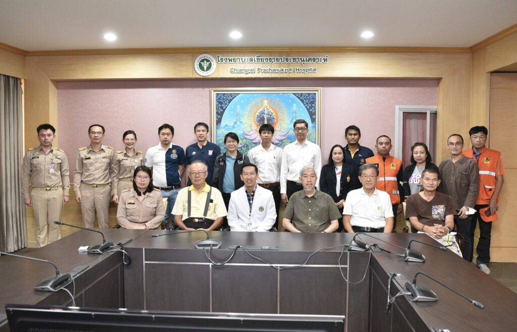 จุดที่ 1) “โรงพยาบาลเชียงรายประชานุเคราะห์” นำโดย รศ.ดร.ธีรพันธ์ อรธรรมรัตน์ จาก มหาวิทยาลัยมหิดล ซึ่งได้รับเกียรติจาก นายแพทย์ศุภโชค มาศปกรณ์ รองผู้อำนวยการฝ่ายการแพทย์ 2 และทีมผู้บริหารโรงพยาบาลให้การต้อนรับ รศ.ดร.ธีรพันธ์ฯ กล่าวว่า โรงพยาบาลเชียงรายประชานุเคราะห์ ได้รับความเสียหายตรงบริเวณช่วงจุดเชื่อมต่อระหว่างอาคารเก่าและใหม่ โดยความเสียหายที่เกิดขึ้นนั้น อาคารแตกเป็นรอยแนวตั้งยาวสามารถเห็นได้อย่างชัดเจนจากภายนอก และในวันที่เกิดแผ่นดินไหวนั้น ภายในอาคารมีผู้ป่วย แพทย์ พยาบาลและเจ้าหน้าที่ที่ต้องใช้อาคารอยู่เป็นจำนวนมาก โดยได้ทำการซ่อมแซมเพื่อความมั่นใจของประชาชนที่เข้ารับบริการ และเพิ่มเติมระบบป้องกันเพื่อเตรียมรับแรงสั่นสะเทือนที่จะเกิดขึ้นในอนาคต