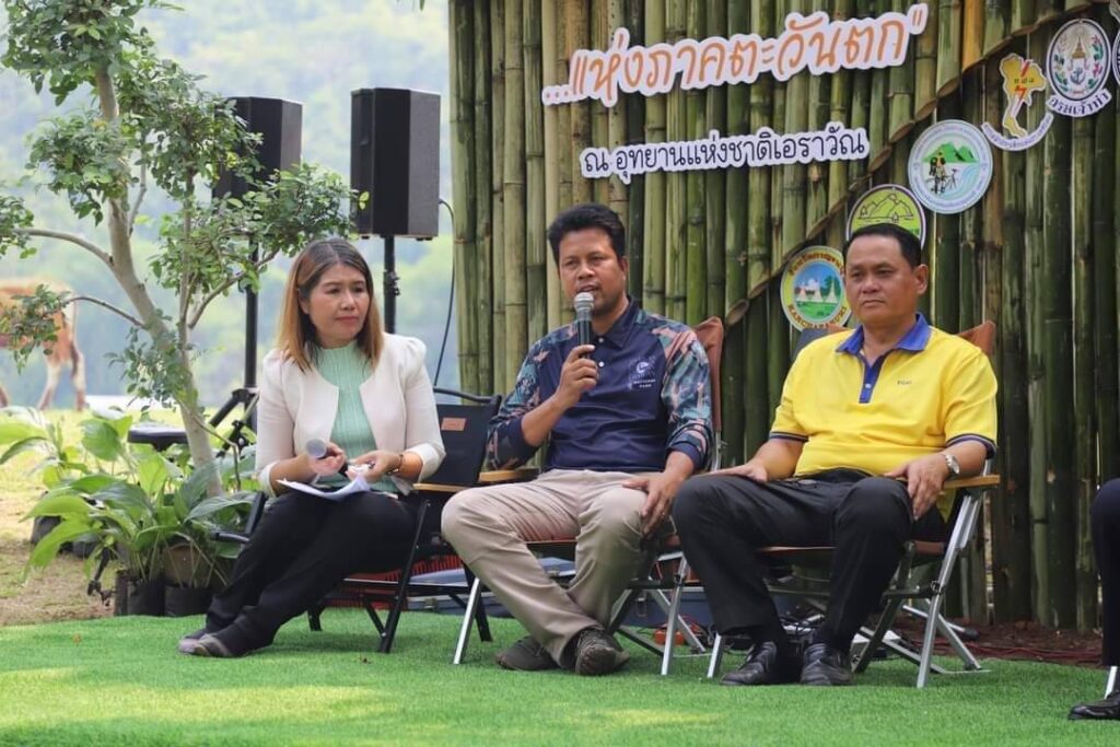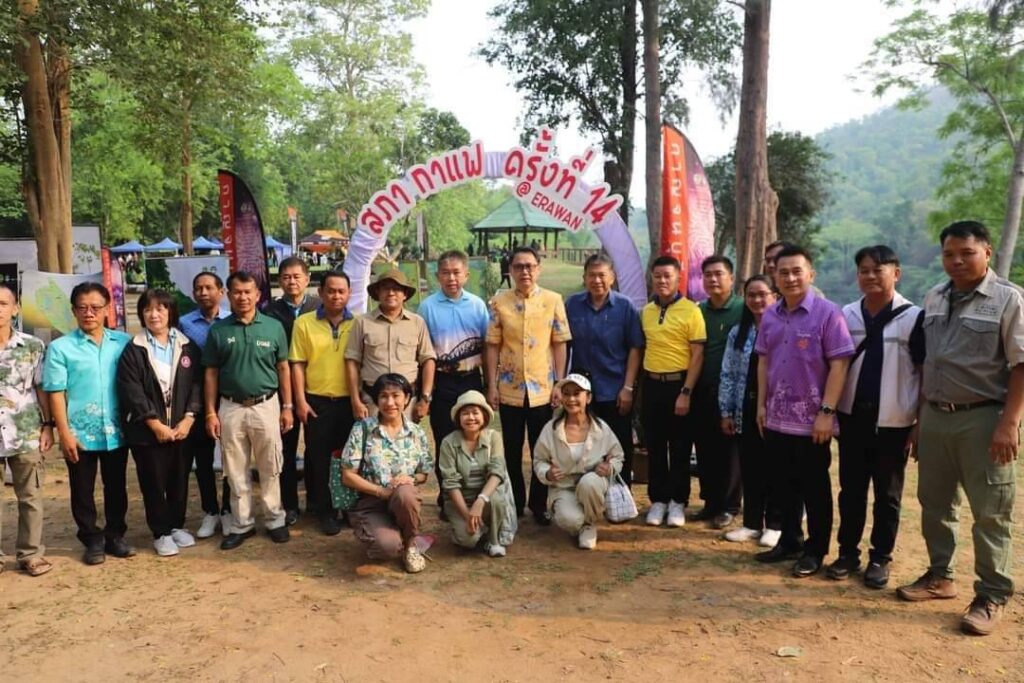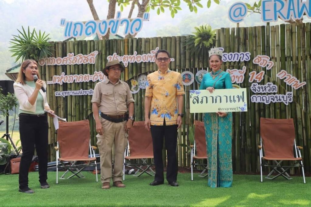 วันนี้(7 พฤษภาคม 2567) เวลา 08.30 น. ณ ลานกางเต็นท์อุทยานแห่งชาติเอราวัณ อำเภอศรีสวัสดิ์ จังหวัดกาญจนบุรี ร้อยโท ทศพล ไชยโกมินทร์ ผู้ว่าราชการจังหวัดกาญจนบุรี เป็นประธานในกิจกรรม “สภากาแฟ”ครั้งที่ 14 พร้อมทั้งร่วมแถลงข่าวร่วมกับ นายศิริรัตน์ บำรุงเสนา นายอำเภอศรีสวัสดิ์ นายสุพล คำเสนาะ หัวหน้าอุทยานแห่งชาติเอราวัณ นายชาญณรงค์ จันทมงคล ผู้อำนวยการเขื่อนศรีนครินทร์ นายสหัสนัย ยืนยง ประธานการท่องเที่ยวอำเภอศรีสวัสดิ์ และนายพัฒน์พงษ์ มงคลกาญจนคุณ ผู้แทนภาคประชาชน ร่วมแถลงข่าวเปิดตัวการท่องเที่ยว “อำเภอศรีสวัสดิ์ ประตูท่องเที่ยวแห่งภาคตะวันตก” เพื่อนำเสนอการท่องเที่ยวของอำเภอศรีสวัสดิ์ที่จะสร้างรายได้กระจายลงสู่ชุมชน มุ่งสู่การเป็นจังหวัดศูนย์กลางการท่องเที่ยวภาคตะวันตก และศูนย์กลางท่องเที่ยวเชิงกีฬา โดยมี นายรณภพ เวียงสิมมา ว่าที่ร้อยตรี ศุภมงคล บูชาถ่ายเทศ นายอธิสรรค์ อินทร์ตรา นายวุฒิพงษ์ สุภัควนิช รองผู้ว่าราชการจังหวัดกาญจนบุรี หัวหน้าส่วนราชการ รัฐวิสาหกิจ ภาคเอกชน ตัวแทนองค์กรต่างๆ และภาคีเครือข่ายทุกภาคส่วนที่เกี่ยวข้องร่วมกิจกรรมฯ
