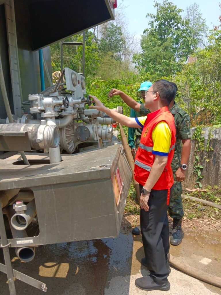 วันที่ 6 พฤษภาคม 2567 เวลา 11.00 น. นายศิริวัฒน์ บุปผาเจริญ ผู้ว่าราชการจังหวัดอุตรดิตถ์ พร้อมด้วย นายภูริวัจน์ โชตินพรัตน์ นายอำเภอลับแล กรมป้องกันบรรเทาสาธารณภัยจังหวัดอุตรดิตถ์ ลงพื้นที่ เพื่อตรวจเยี่ยมและให้กำลังใจแก่ชาวบ้าน ที่ประสบภัย ในพื้นที่อำเภอลับแล เนื่องจากเกิดพายุฝนตกหนักและลมกระโชกแรง เมื่อวันที่ 3 พฤษภาคม 2567 ทำให้บ้านเรือนของประชาชนได้รับความเสียหายจากพายุฝนตกหนักและลมกระโชกแรง ทำให้เสาไฟฟ้าหักโค่น จึงทำให้ไม่มีกระแสไฟฟ้าใช้และส่งผลให้ขาดแคลนน้ำอุปโภคและบริโภค จึงได้ประสานรถน้ำของกองพันทหารปืนใหญ่ที่ 20 กรมทหารปืนใหญ่ที่ 21 และกรมชลประทานจังหวัดอุตรดิตถ์ เข้าร่วมแจกจ่ายน้ำให้กับชาวบ้านเพื่อใช้อุปโภคและบริโภค และได้สั่งการให้การไฟฟ้าแห่งภูมิภาค เร่งซ่อมแซมกระแสไฟฟ้า ให้กับชาวบ้านในพื้นที่ หมู่ที่ 12 ตำบลฝายหลวง อำเภอลับแล จังหวัดอุตรดิตถ์