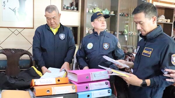 พล.ต.ต.สมชาย ซื่อต่อตระกูล ผบก.ภ.จว.นครศรีธรรมราช, พ.ต.อ.ภาณุภาคยณ์ จิตต์ประยูรตี รองผบก.ตม.6 และ นายปราโมทย์ รัตรประทีป อัยการจังหวัดประจำสำนักงานอัยการสูงสุด สำนักงานอัยการจังหวัดทุ่งสง นำกำลังปิดล้อมตรวจค้น 7 จุด อ.ฉวาง และ อ.ทุ่งสง จ.นครศรีธรรมราช ตามยุทธการ Takedown Scammer Ep:2 จับกุมเครือข่ายขบวนการคอลเซ็นเตอร์ข้ามชาติ