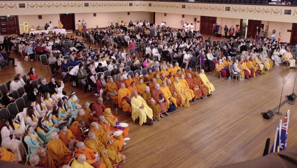 นอกจากนี้ภายในงาน ได้รับเกียรติจากตัวแทนจากศาสนาอื่นๆ มาร่วมกล่าวสุนทรพจน์อวยพรให้แก่ชุมชนชาวพุทธอีกด้วย จากนั้นพระครูภาวนาญาณวิเทศ (รณรวี รวิปโภ) เจ้าอาวาสวัดพระธรรมกายเมลเบิร์น, กรรมการสหภาพพระธรรมฑูตไทยในโอเชียเนีย และรองประธาน Buddhist Federation of Australia นำคณะสงฆ์และสาธุชน ร่วมกันเจริญสมาธิภาวนา ส่งความรักปรารถนาดีให้ครอบครัว ชุมชน และอุทิศส่วนกุศลให้แก่ผู้ที่ล่วงลับ พร้อมกับอธิษฐานจิตเพื่อสันติภาพของโลก และในงานยังมีการสาธยายธรรมหัวข้อมงคลสูตรเป็นภาษาบาลีและภาษาอังกฤษของกลุ่มเยาวชนจากองค์พุทธต่างๆอีกด้วย.