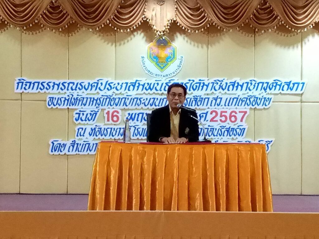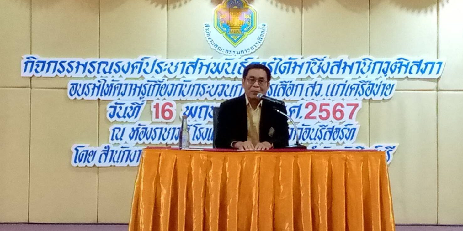 วันที่ 16 พฤษภาคม 2567 เวลา 08.30 น.สำนักงานคณะกรรมการการเลือกตั้งประจำจังหวัดสิงห์บุรี จัดกิจกรรมรณรงค์ประชาสัมพันธ์การได้มาซึ่งสมาชิกวุฒิสภา อบรมให้ความรู้เกี่ยวกับกระบวนการการเลือกสว.แก่เครือข่ายศูนย์ส่งเสริมประชาธิปไตยตำบล ( ศส.ปชต. ) โดยมี นายชฎิลทร เหล่าทา หัวหน้ากลุ่มงานจัดการเลือกตั้งและการมีส่วนร่วม เป็นประธานในพิธีเปิด และนายวิวัฒนากร ไชยะ หัวหน้ากลุ่มงานสืบสวนสอบสวนและพรรคการเมืองเป็นผู้กล่าวรายงาน มีผู้เข้าร่วมอบรมจำนวน 129 คน ณ ห้องราชาวดี โรงแรมโกลเด้นดราก้อนรีสอร์ท ต.ต้นโพธิ์ อ.เมืองสิงห์บุรี จ.สิงห์บุรี