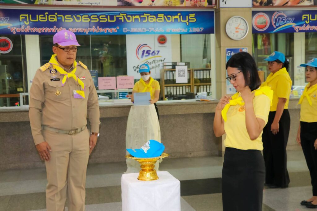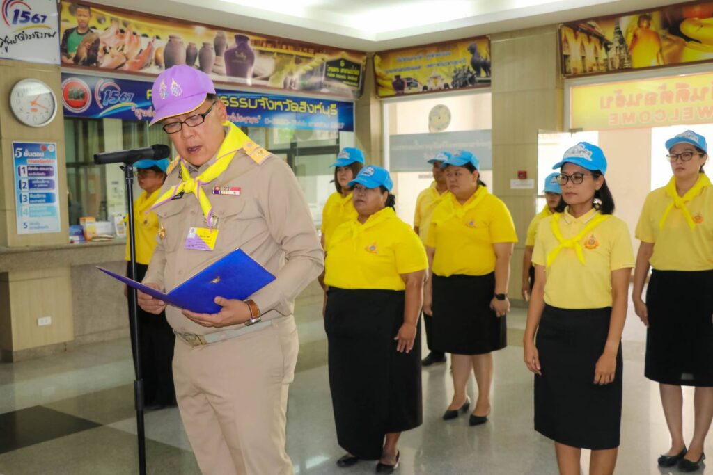 นายวราดิศร อ่อนนุชรองผู้ว่าราชการจังหวัดสิงห์บุรีเป็นประธานในพิธีมอบหมวกและผ้าพันคอจิตอาสาพระราชทานต่อเบื้องหน้าพระฉายาลักษณ์สมเด็จพระเจ้าอยู่หัวให้แก่นางสาวมนชยา ปรีชา พัฒนาสังคมและความมั่นคงของมนุษย์จังหวัดสิงห์บุรี ณ ห้องโถงศาลากลางจังหวัดสิงห์บุรี โดยมี ข้าราชการ พนักงานราชการและเจ้าหน้าที่ สังกัดกระทรวงพัฒนาสังคมและความมั่นคงของมนุษย์จังหวัดสิงห์บุรีเข้าร่วมพิธีฯพร้อมเพรียงกันทั่วประเทศ ผ่านระบบ Zoom Meeting โดยวิทยากรที่มีความรู้ความเชี่ยวชาญของศูนย์อำนวยการใหญ่จิตอาสาพระราชทานเพื่อส่งเสริมและปลูกฝังจิตสำนึกการเป็นจิตอาสาเพื่อประชาชนการประพฤติปฏิบัติตนตามกรอบแนวทางการเป็นจิตอาสาพระราชทานที่ดีปฏิบัติหน้าที่ด้วยความเสียสละอุทิศตนและร่วมสร้างสังคมของการช่วยเหลือเกื้อกุลอย่างมีคุณภาพ