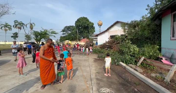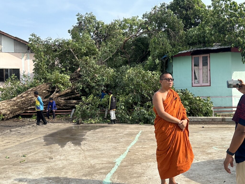 พายุฤดูร้อนพัดถล่มตำบลเขาสมอคอน อำเภอท่าวุ้ง จังหวัดลพบุรี ทำต้นไม้ใหญ่อายุเกือบ100ปีล้มทับอาคารเรียนเสียหาย3หลัง