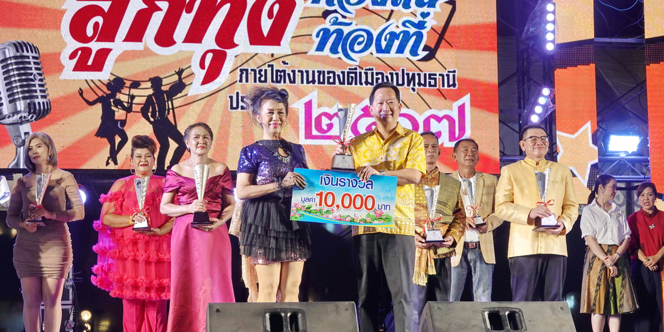 บรรยากาศภายในงานมีประชาชนเข้าเที่ยวชมงานจำนวนมาก มีร้านค้ากว่า 300 ร้านให้ประชาชนได้พาครอบครัวมาเที่ยวของซื้อของกินของรับประทานที่หลากหลาย ในส่วนของการประกวดร้องเพลงท้องถิ่นท้องที่ ตัดสิน ชายและหญิง ประกอบด้วย นายประสิทธิ์ วงศ์สุวรรณ ผู้ช่วยผู้ใหญ่บ้านหมู่ 1 ตำบลหลักหก อำเภอเมืองปทุมธานี , นายสุนันท์ ไวยเมธี กำนันตำบลกระแชง อำเภอสามโคก , นายวิโรจน์ ผอบสวรรค์ ผู้ช่วยผู้ใหญ่บ้าน หมู่ 7 ตำบลคลองสาม อำเภอคลองหลวง , นายนุกุล นามปราศรัย สารวัตรกำนัน ตำบลนพรัตน์ อำเภอหนองเสือ , นางธนพร อิษฎานนท์ ผู้ใหญ่บ้านหมู่ 1 ตำบลหลักหก อำเภอเมืองปทุมธานี , นางสาวเกษรินทร์ เกตุราม แพทย์ประจำตำบลลำผักกูด อำเภอธัญบุรี , นางจิราพร ยิ้มแย้ม ผู้ช่วยผู้ใหญ่บ้านหมู่ 12 ตำบลคลองสาม อำเภอคลองหลวง และ นางธัญญ์รวี มณีโชติจิรภัทร์ ผู้ช่วยผู้ใหญ่บ้านหมู่ 2 ตำบลคลองพระอุดม อำเภอลาดหลุมแก้ว ผู้ชนะเลิศได้รับเงินรางวัล 10,000 บาท พร้อมถ้วยรางวัล และรางวัลขวัญใจมหาชนที่ได้จากจำนวนพวงมาลัยที่ประชาชนซื้อมามอบให้ผู้เข้าแข่งขัน โดยรายได้จากการขายพวงมาลัยมอบให้กาชาดใช้ในกิจกรรมสาธารณกุศล ประชาชนเข้าร่วมชมและเชียร์นักร้องซึ่งเป็นตัวแทนของฝ่ายปกครอง และตัวแทนขององค์กรปกครองส่วนท้องถิ่นแต่ละอำเภอส่งเข้าร่วมแข่งขันประชันเสียงร้อง ในเวทีการประกวดร้องเพลงไทยลูกทุ่ง ที่ต่างขึ้นเวทีมาโชว์พลังเสียงในเพลงที่ตัวเองถนัด ที่สร้างสีสันและความสนุกสนานให้กับผู้เข้าร่วมชมและเชียร์ ที่มีชาวบ้านจากทุกอำเภอมาร่วมชมและเชียร์กันอย่างคึกคักจนล้นที่นั่งที่จัดเตรียมไว้ให้กองเชียร์ ร่วมถึงกองเชียร์ที่ออกมาเต้นรำให้กำลังใจถึงหน้าเวที
